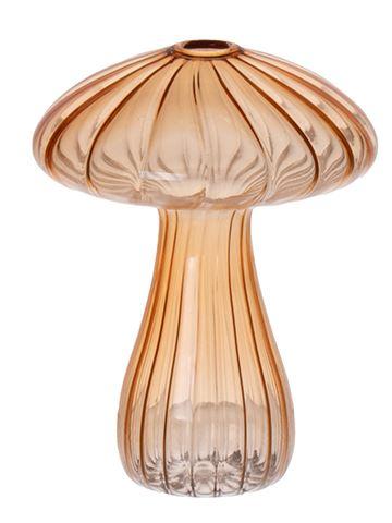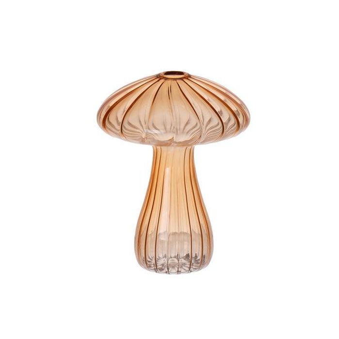 Florero de cristal PULCHERIA, forma de seta, ranuras, ámbar-transparente, 13cm, Ø10cm