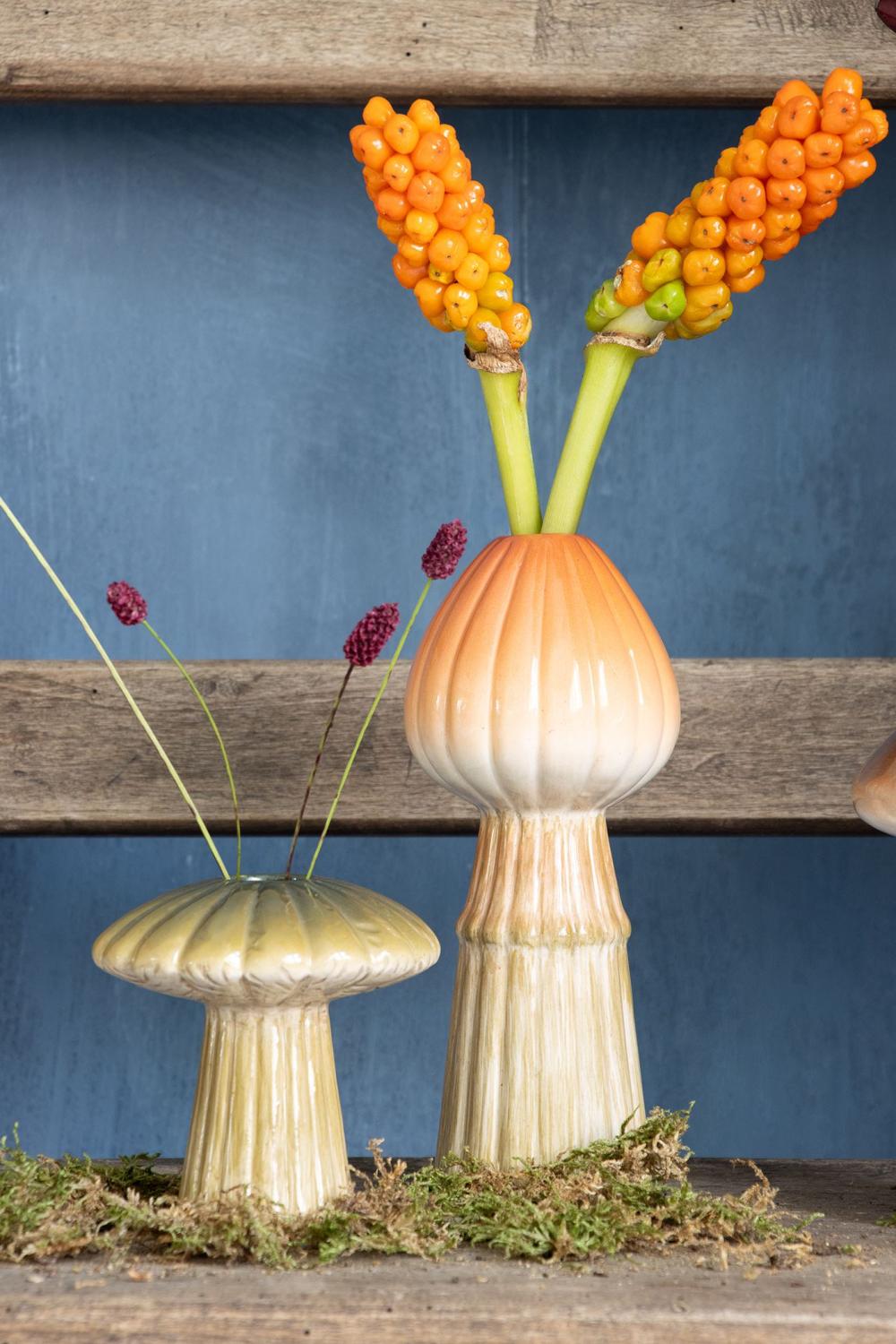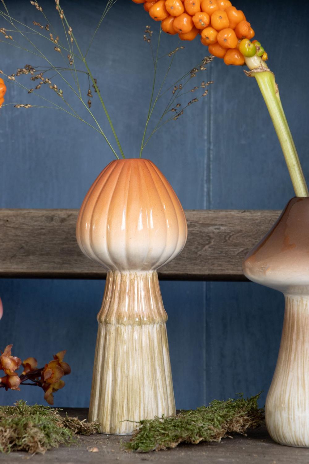 Florero seta de cerámica RADOMILA, ranuras, naranja-beige, 18cm, Ø7,4cm