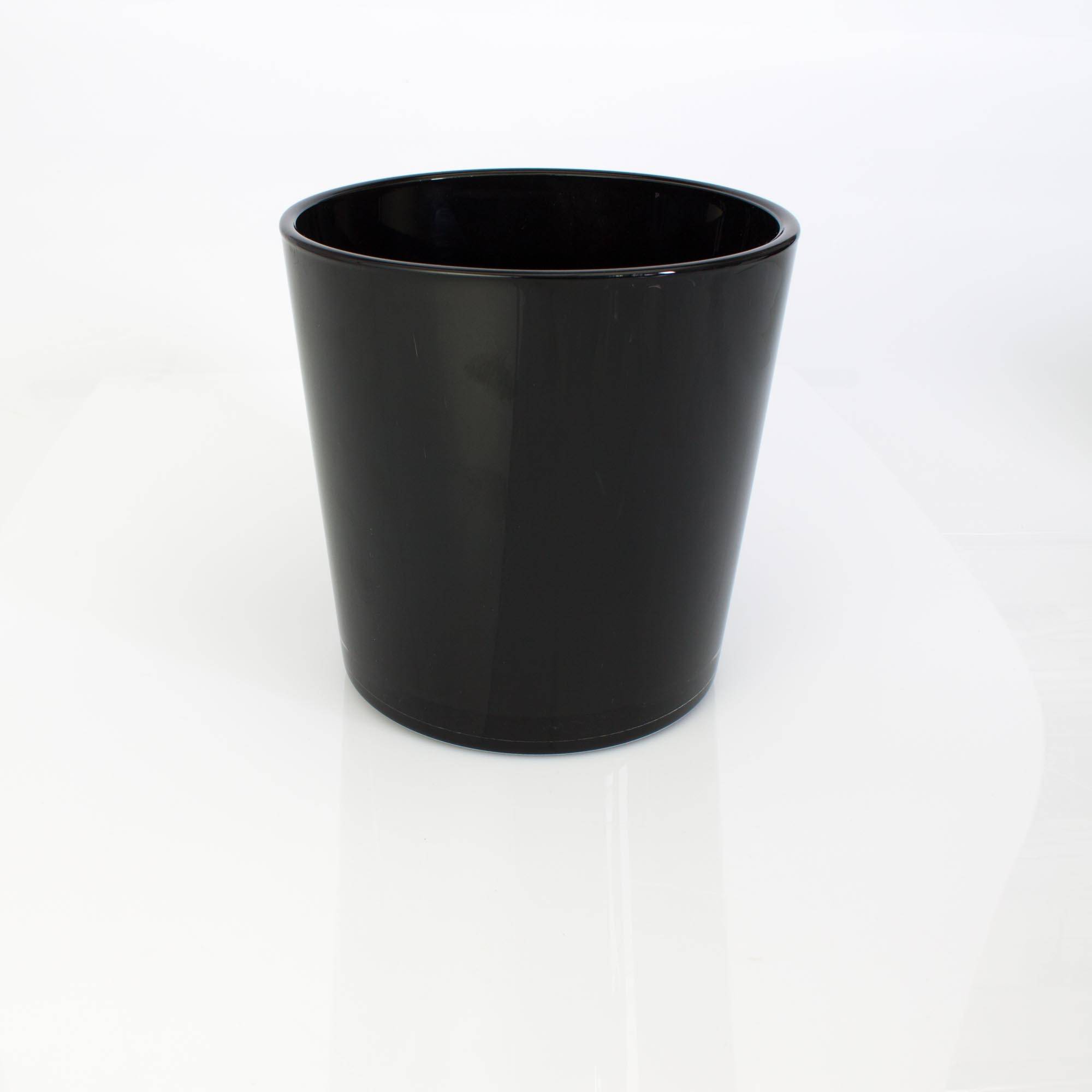 Gran tiesto ALENA en color negro de INNA Glas. El macetero posee una altura de 19 cm, un diámetro de 18,5 cm y es ideal para pequeños arboles como la Yucca, la Dracaena y demás.