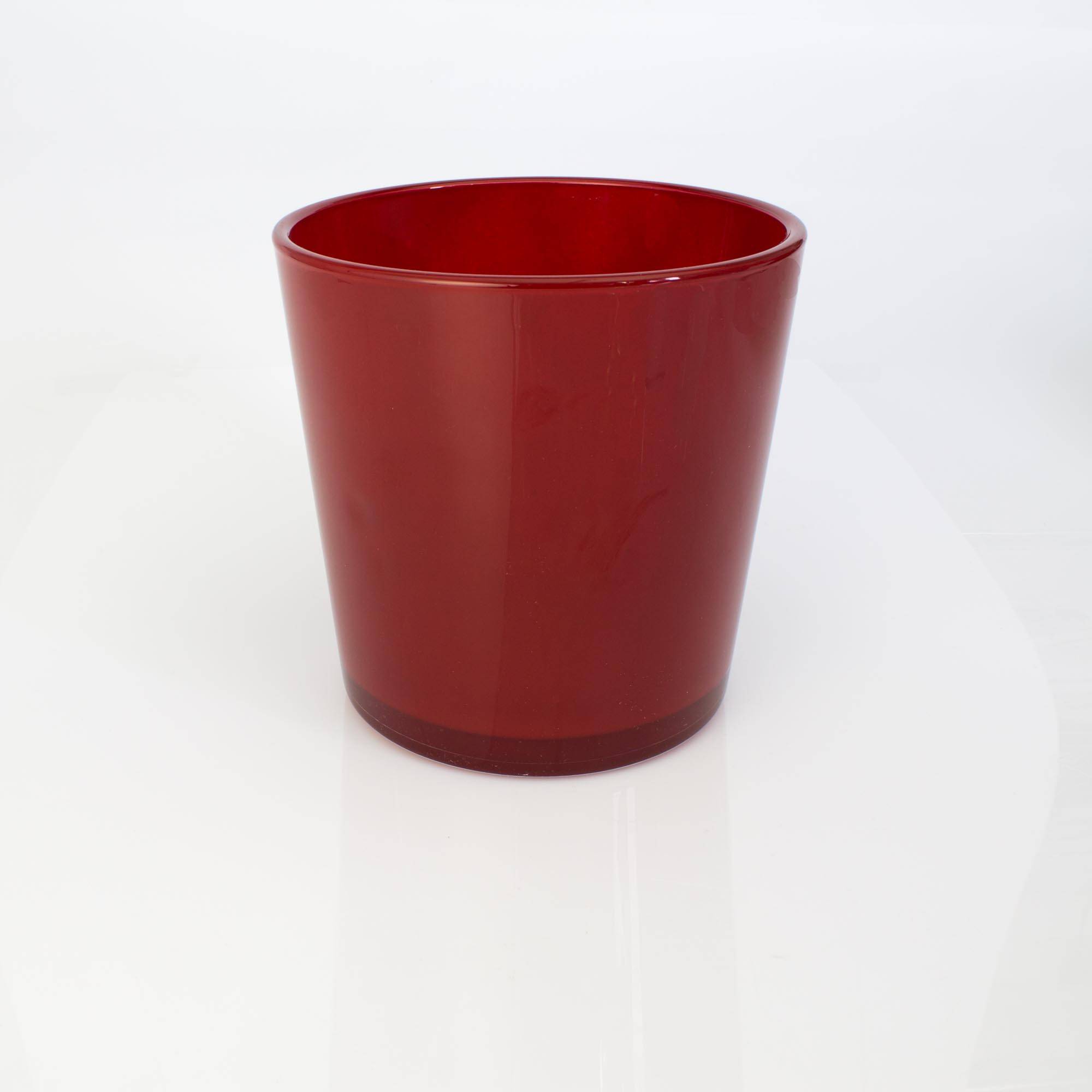 Gran tiesto ALENA en color rojo de INNA Glas. El macetero posee una altura de 19 cm, un diámetro de 18,5 cm y es ideal para pequeños arboles como la Yucca, la Dracaena y demás.