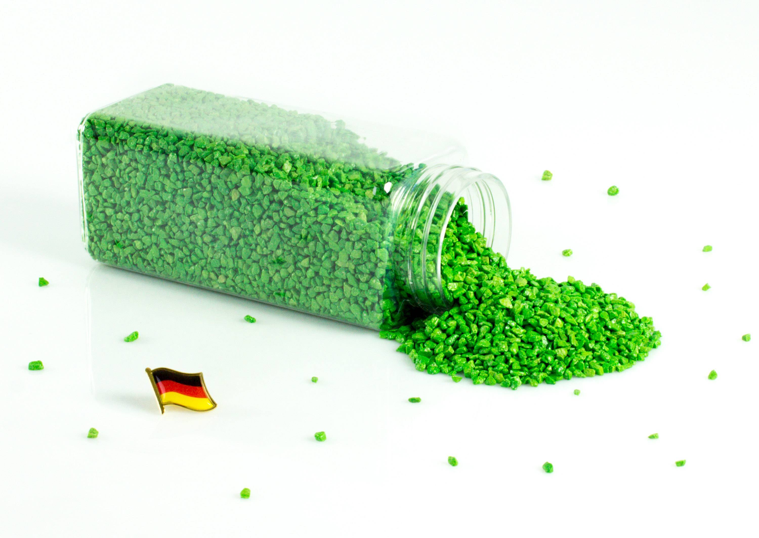 Granulado decorativo / Piedras decorativas ASLAN, color verde-rana, 3-8mm, 605ml bote, Producido en Alemania