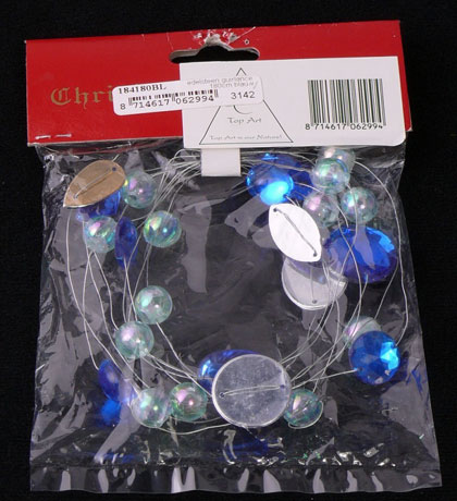 Guirnalda de perlas decorativas DINGO con piedras decorativas, plata-azul, 180 cm