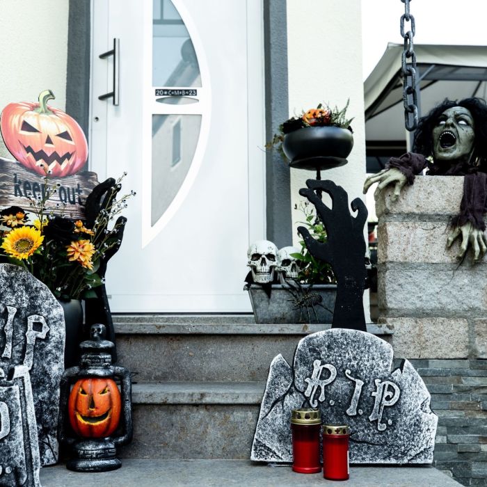 ¡Truco o trato! ¿Qué hay mejor que unos niños gritones pidiendo caramelos en la puerta de tu casa? ¡Pues a darles un buen susto! Nuestras lápidas y manos de poliestireno ya tienen un factor espeluznante muy alto, pero las calaveras iluminadas que puedes poner en macetas también dan mucho miedo. Un ramo de rosas negras y girasoles nunca debe faltar en los looks de artplants. Al fin y al cabo, las flores embellecen hasta los lugares más terroríficos. ¡Compra el look!