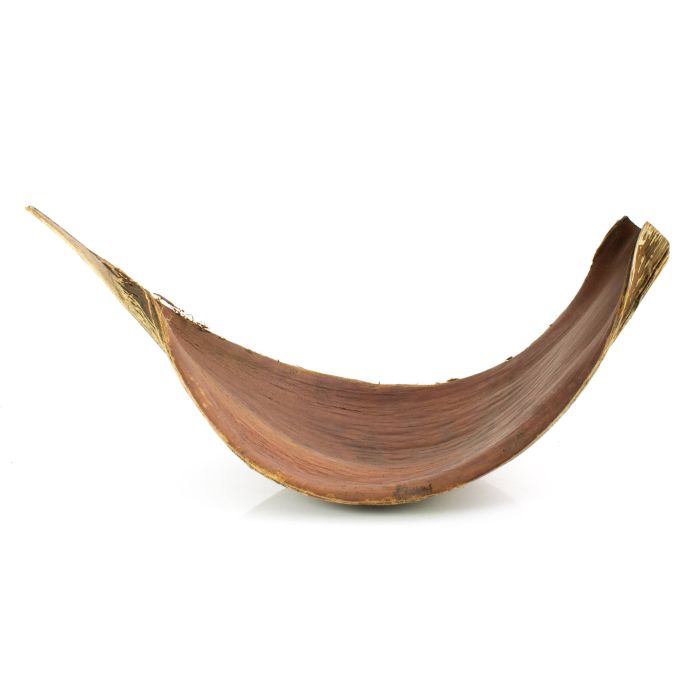 Hoja seca de galara con unas dimensiones aproximadas de 60 – 70 cm. Curvada hoja conservada en su aspecto natural que se mantiene por si sola en la forma mostrada en la foto.