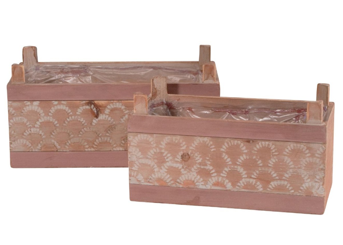 Jardinera de madera con dibujo KARPUZ, 2 piezas, rectangular, salmón, 27-32cm