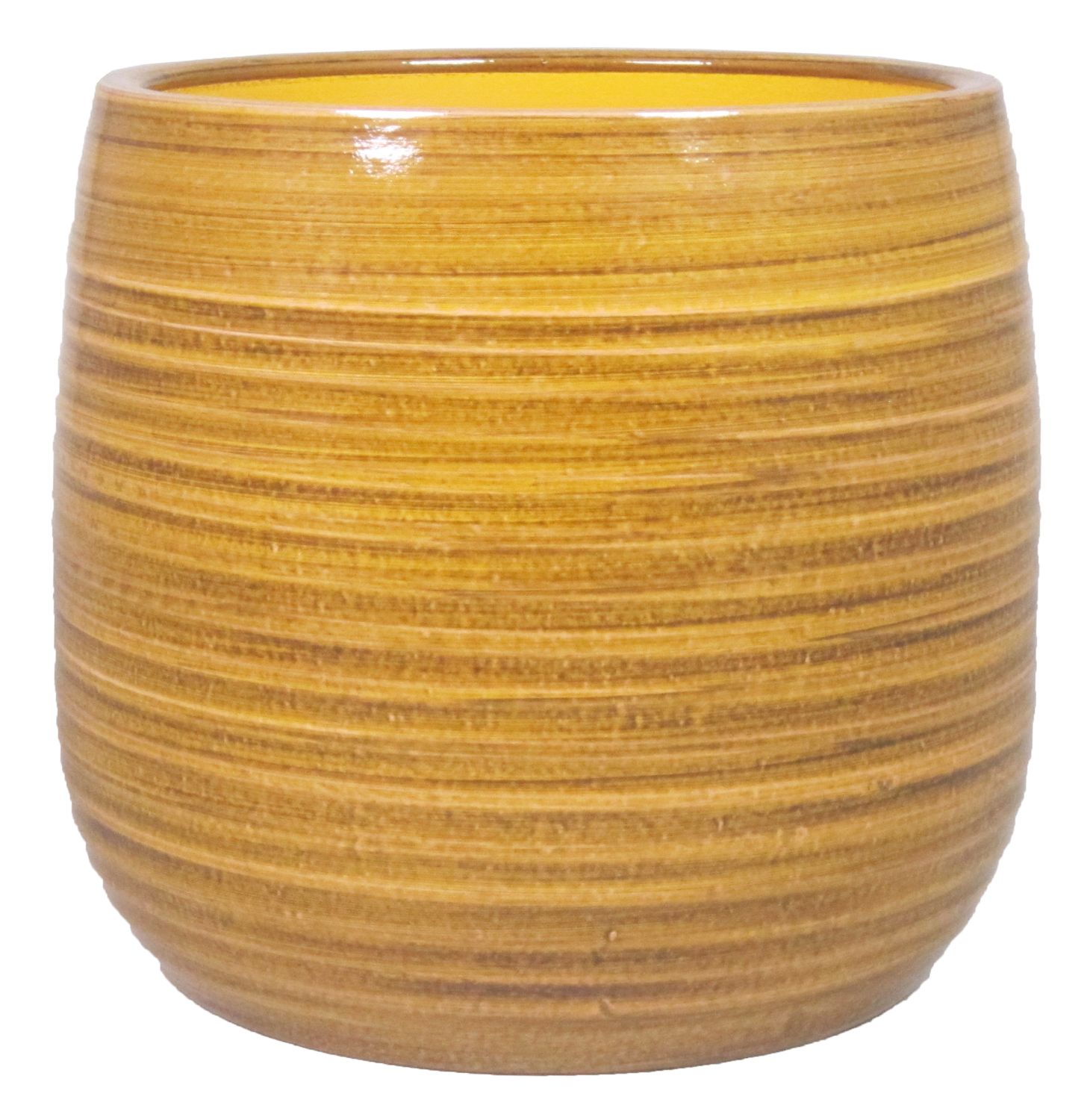 Jardinera retro AGAUE de cerámica, muescas, amarillo ocre, 21cm, Ø23cm