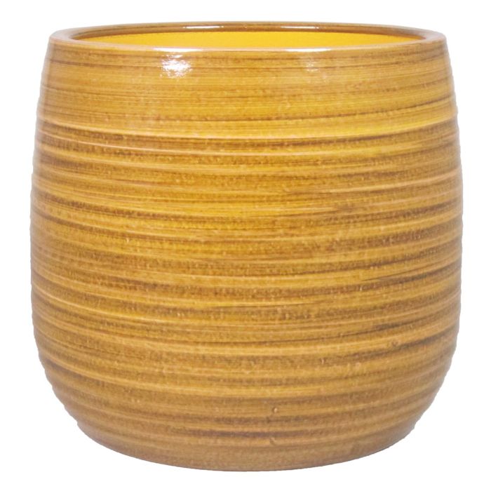 Maceta AGAUE de cerámica en color amarillo ocre con un diámetro de aprox. 23 cm y una altura de aprox. 21 cm.