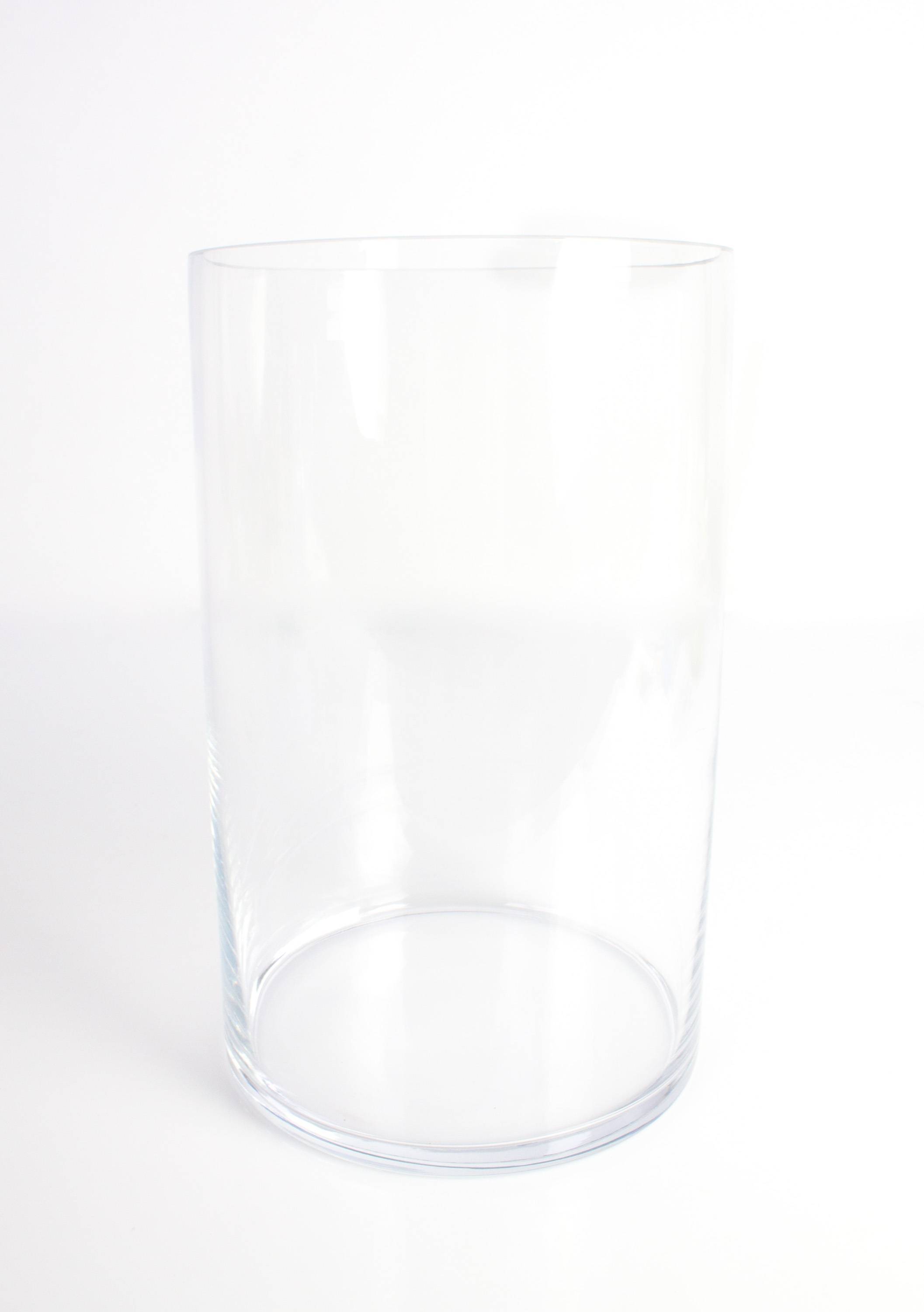 Macetero SANSA con forma cilíndrica de vidrio transparente de INNA Glas. El bonito jarrón es de unos 30 cm de alto y tiene un diámetro exterior de unos 18,5 cm.