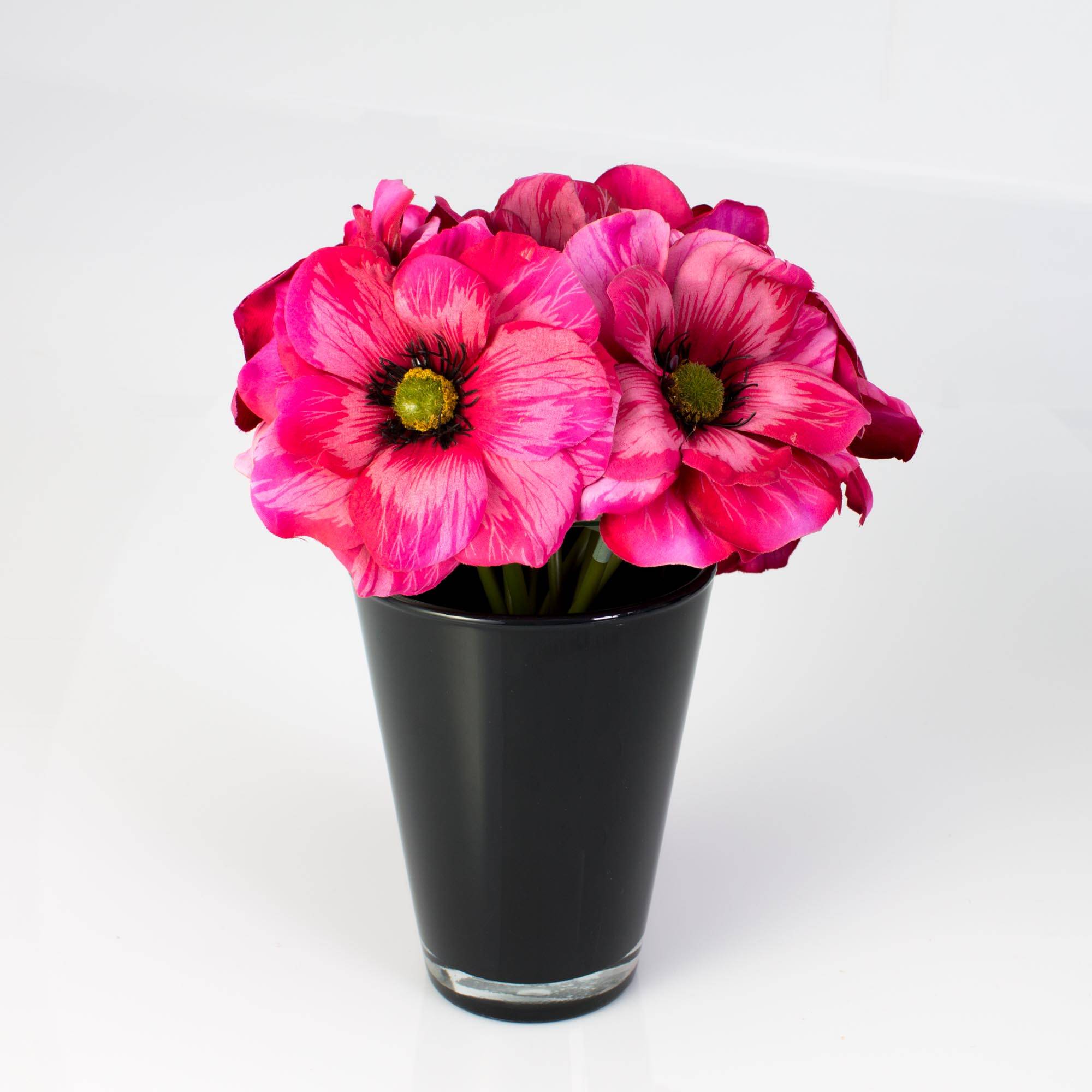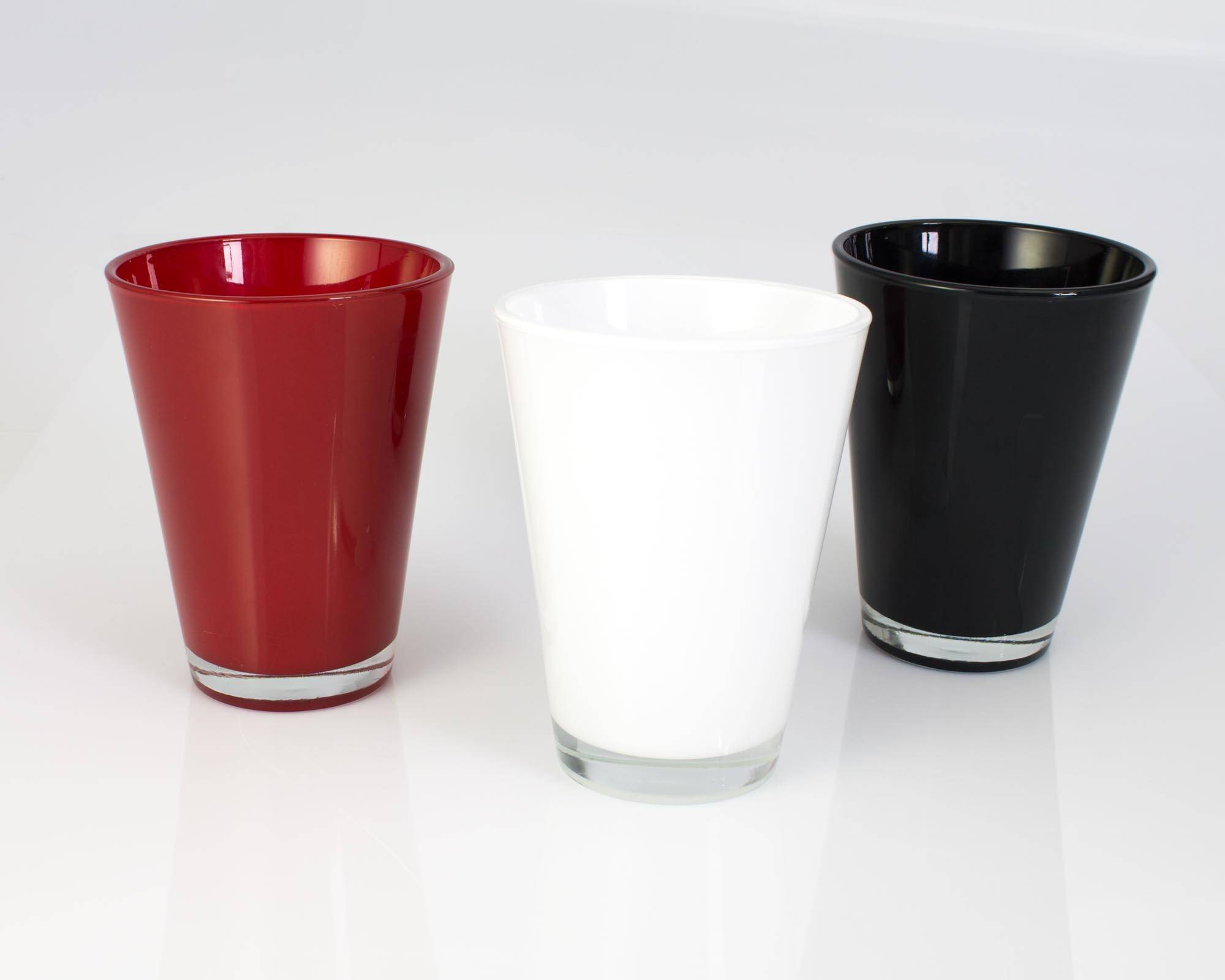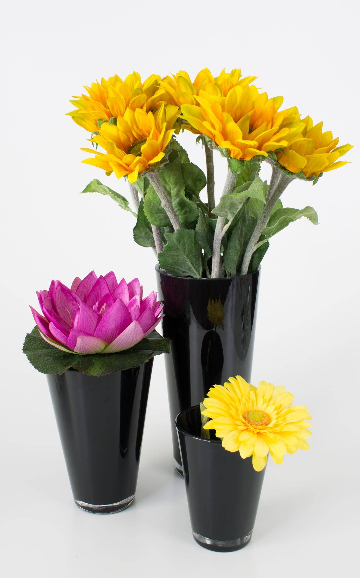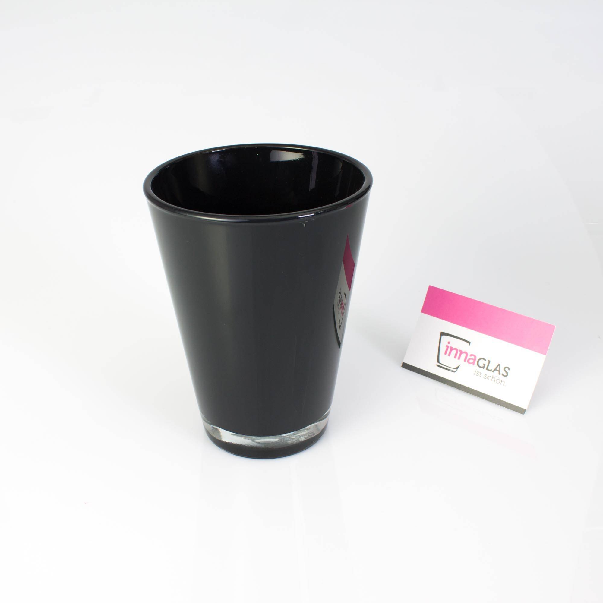 Pequeño y cónico florero ANNA de cristal en color negro de INNA Glas. El jarrón posee una altura de 15 cm y un diámetro de 11 cm suficiente espacio para albergar pequeños ramos de flores.
