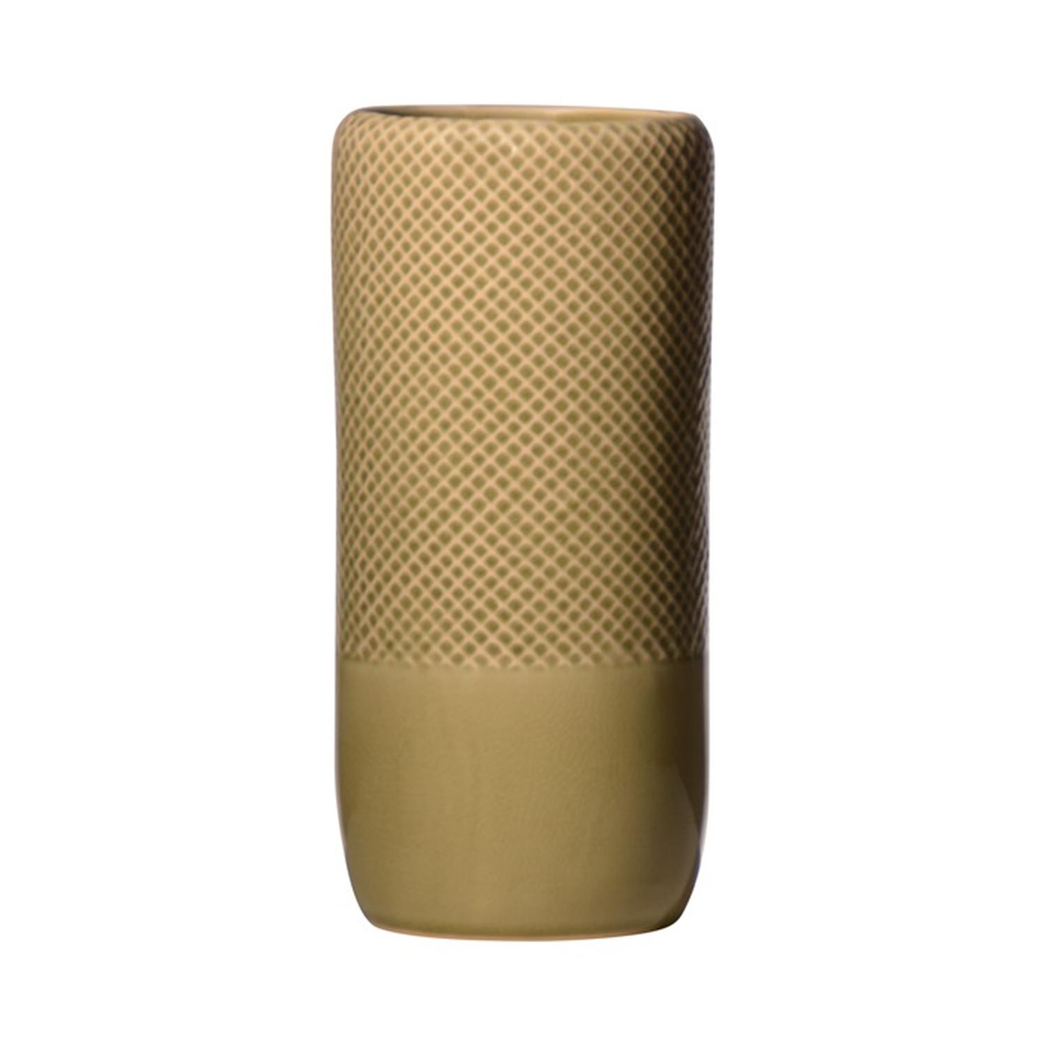 Jarrón DANYLO de cerámica, diseño de rombos, verde-marrón, 28cm, Ø13cm