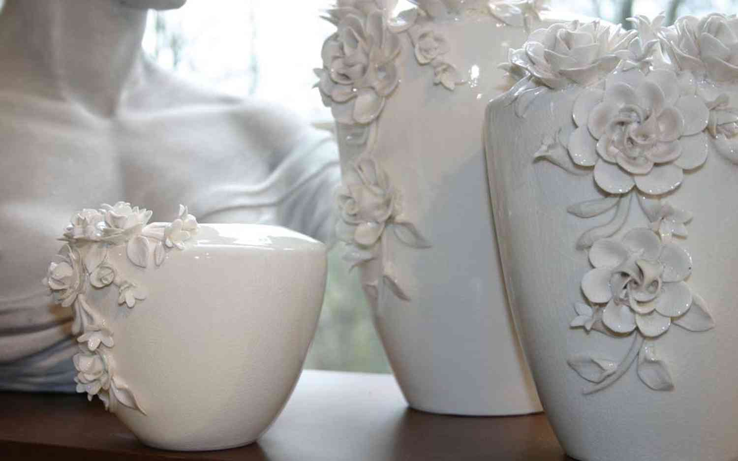 - Elegante jarrón de cerámica con rosas, por ejemplo, como regalo para el Día de la Madre, como decoración de bodas, para una mesa festiva, etc.