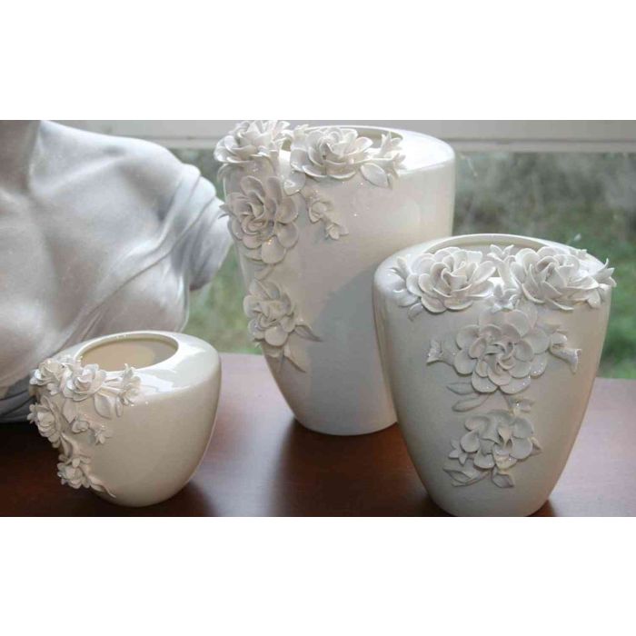 jarrón de cerámica ANANDA con adorno de rosas, 21 cm.