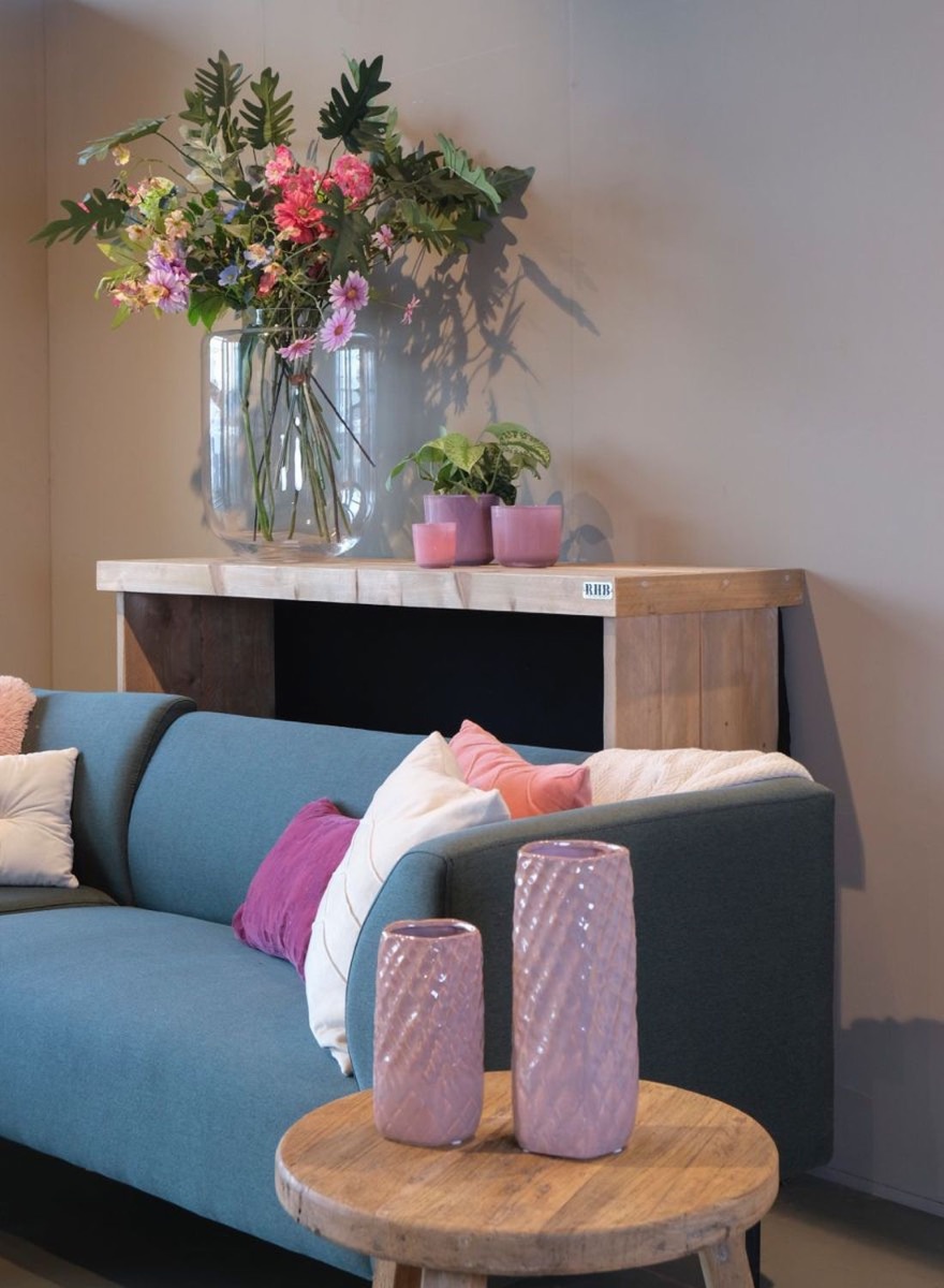 El jarrón decorativo DAVINE de color terracota es ideal para flores como rosas, gerberas o claveles.