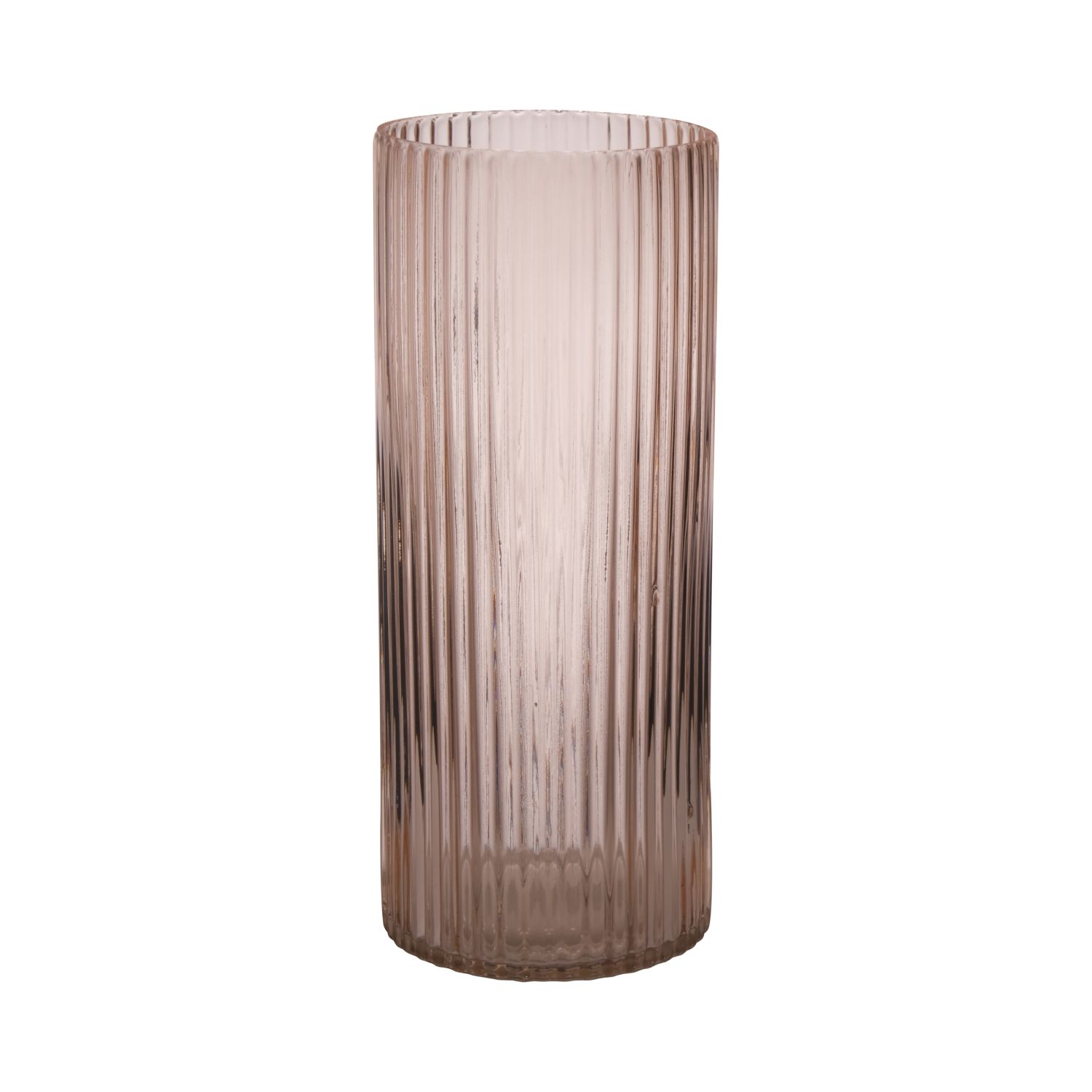 Jarrón de cristal moderno SORCHA con ranuras, rosa pálido-transparente, 30cm, Ø12,5cm