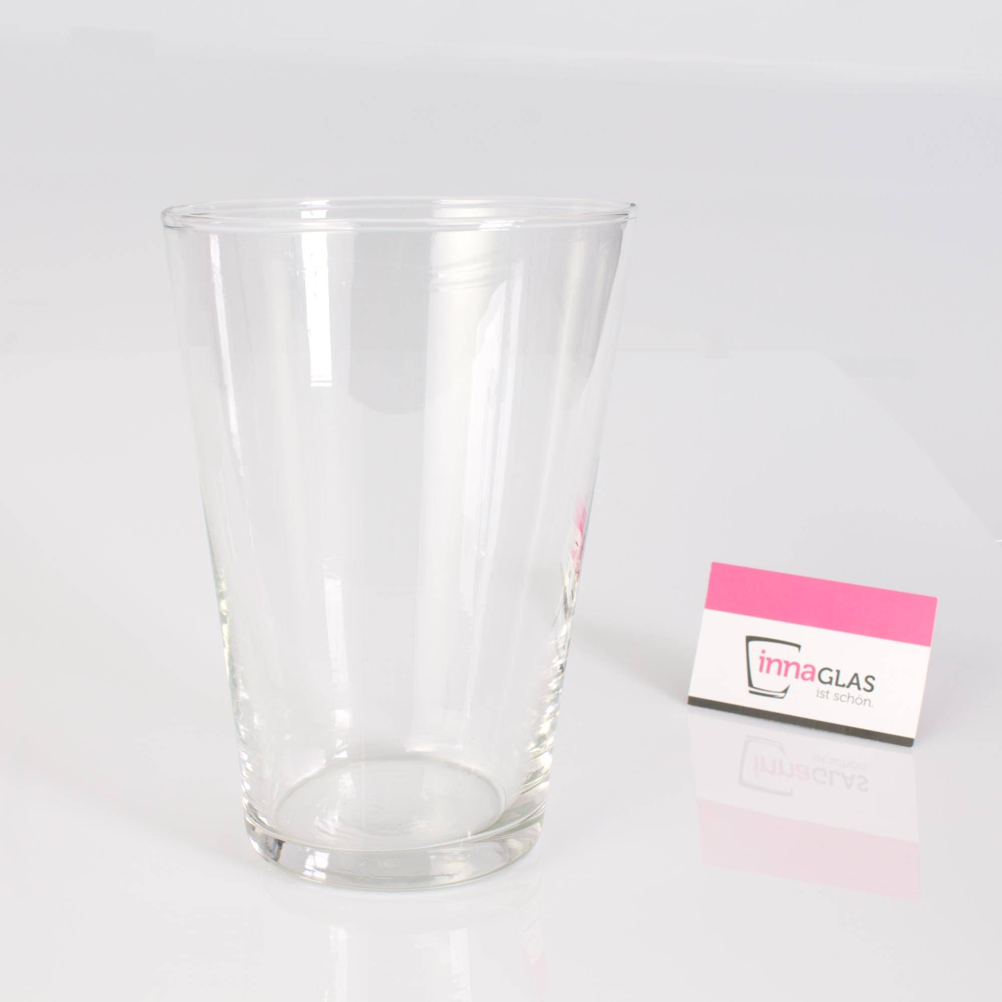 Cónico jarrón JENNY de cristal transparente de 3 mm de INNA Glas. El bonito florero posee una altura de 19,5 cm y un diámetro exterior superior de 14 cm.
