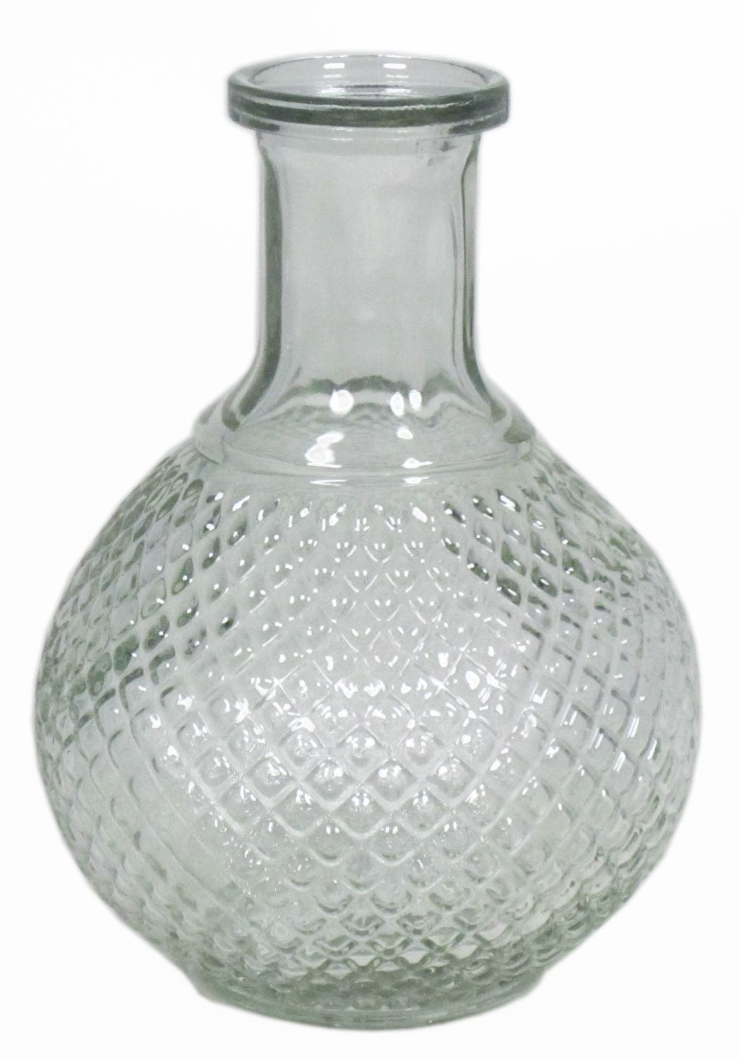 Jarrón florero DONKA, fino motivo de diamantes, esfera/redondo, transparente, 15cm, Ø4,5cm/Ø11cm