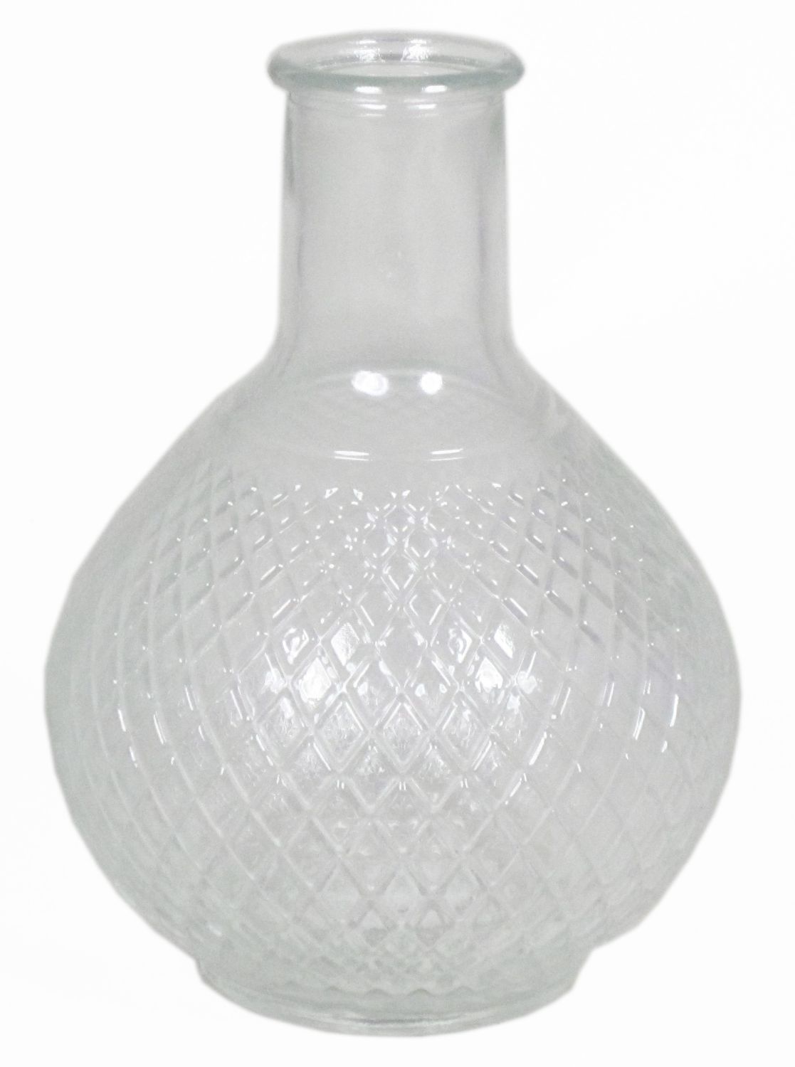 Jarrón florero DONKA, fino motivo de diamantes, esfera/redondo, transparente, 18,5cm, Ø5cm/Ø13,5cm