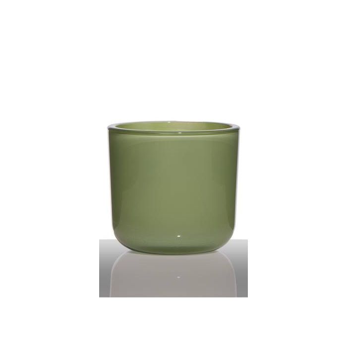 Jarrón para velas NICK, cilíndrico/redondo, verde hierba, 13cm, Ø14cm