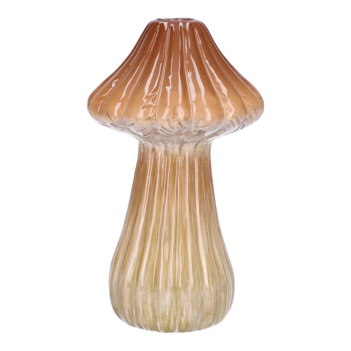 Jarrón RATBURGA, forma de seta, cerámica, ranuras, marrón-beige, 16cm, Ø9cm