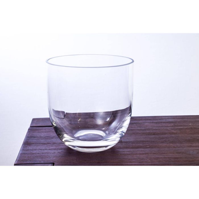 Jarrón redondo EMMA con gruesas paredes de cristal transparente de 3 mm de INNA Glas. El jarrón de cristal posee una altura de 19 cm y un diámetro de 19 cm, lo que le tiene suficiente cabida para albergar grandes ramos de flores y orquídeas.