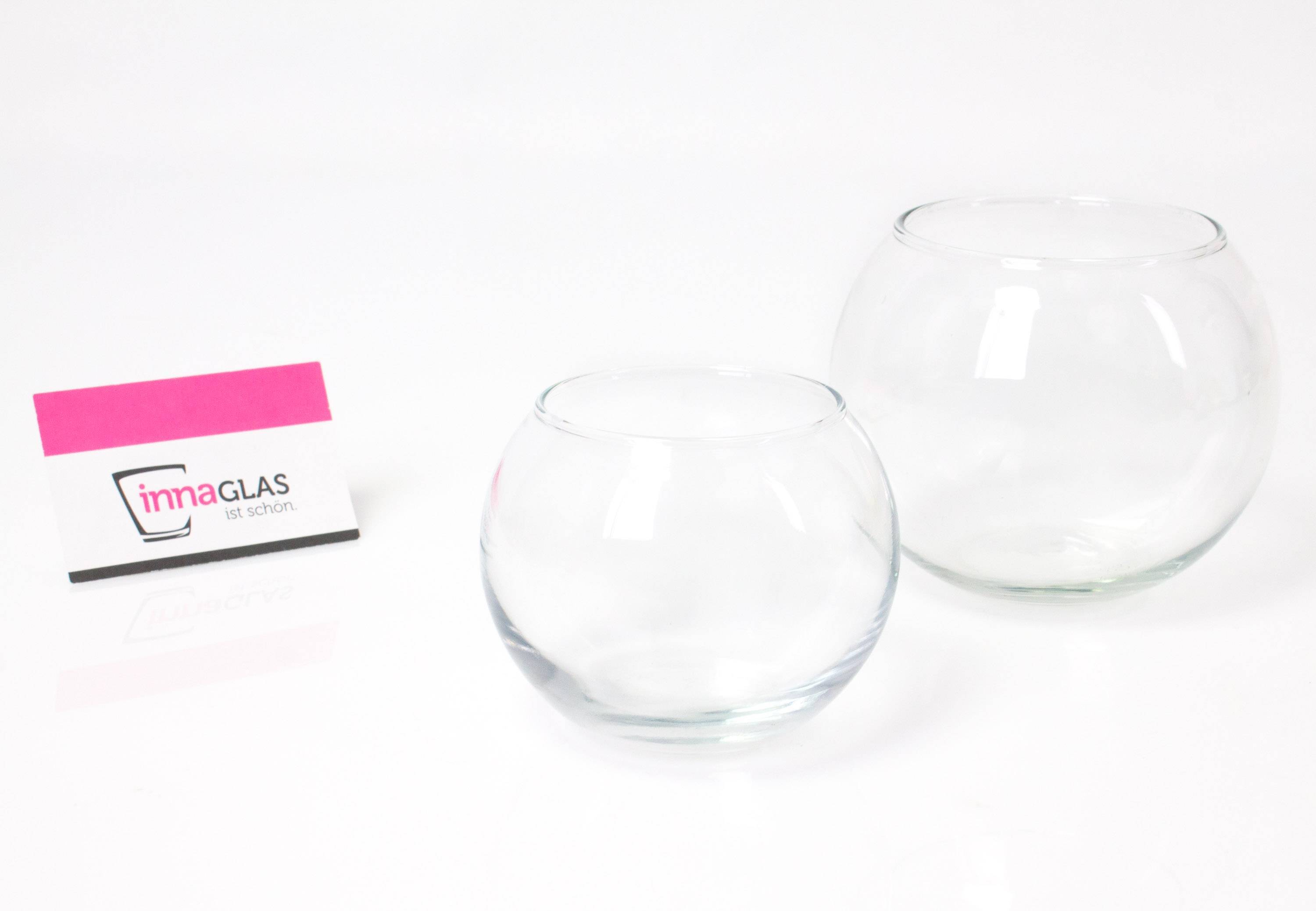 Jarrón redondo TOBI con un diámetro de 11,5 cm de INNA Glas. El cristal decorativo es perfecto para decoraciones de mesa con por ejemplo, ramas, arena, piedras decorativas, velas y mucho más.