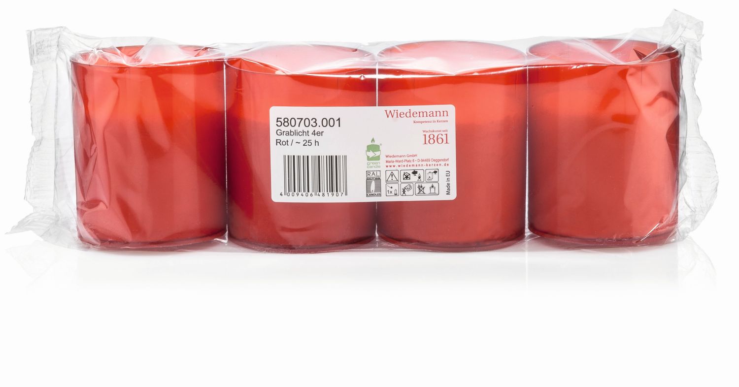 Luz de tumba JESENIA, 4 piezas, rojo-blanco, 5,9cm, Ø5cm, 25h