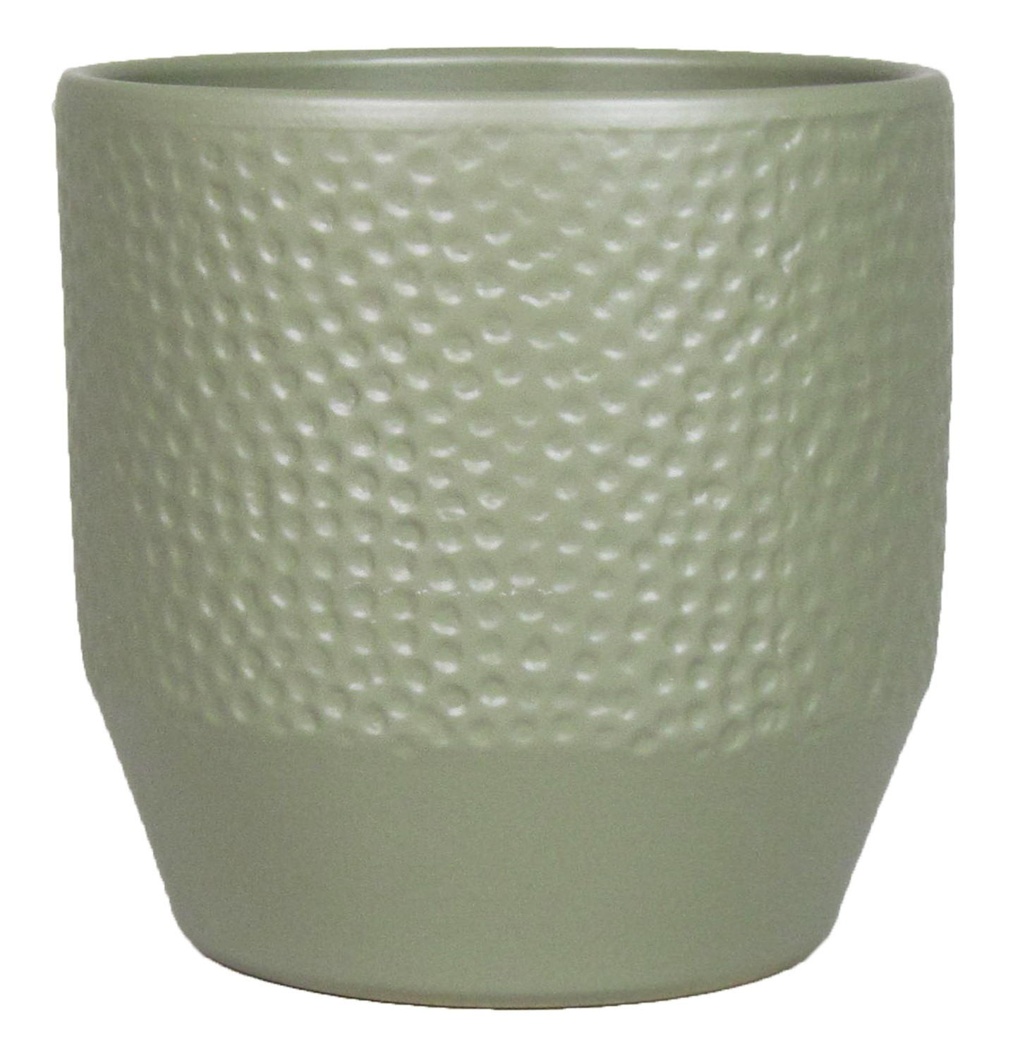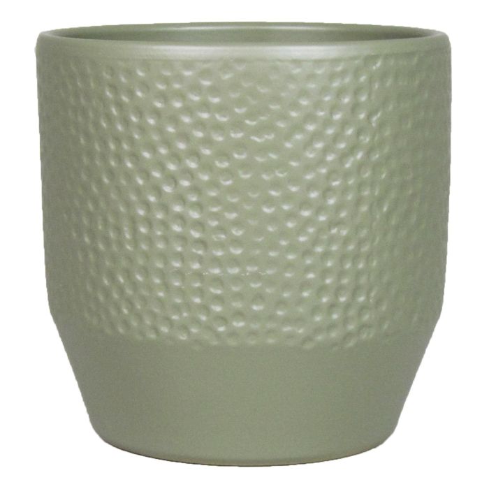 Maceta BIHAM, cerámica, diseño martillado, verde oliva-mate, 13,2cm, Ø13,5cm