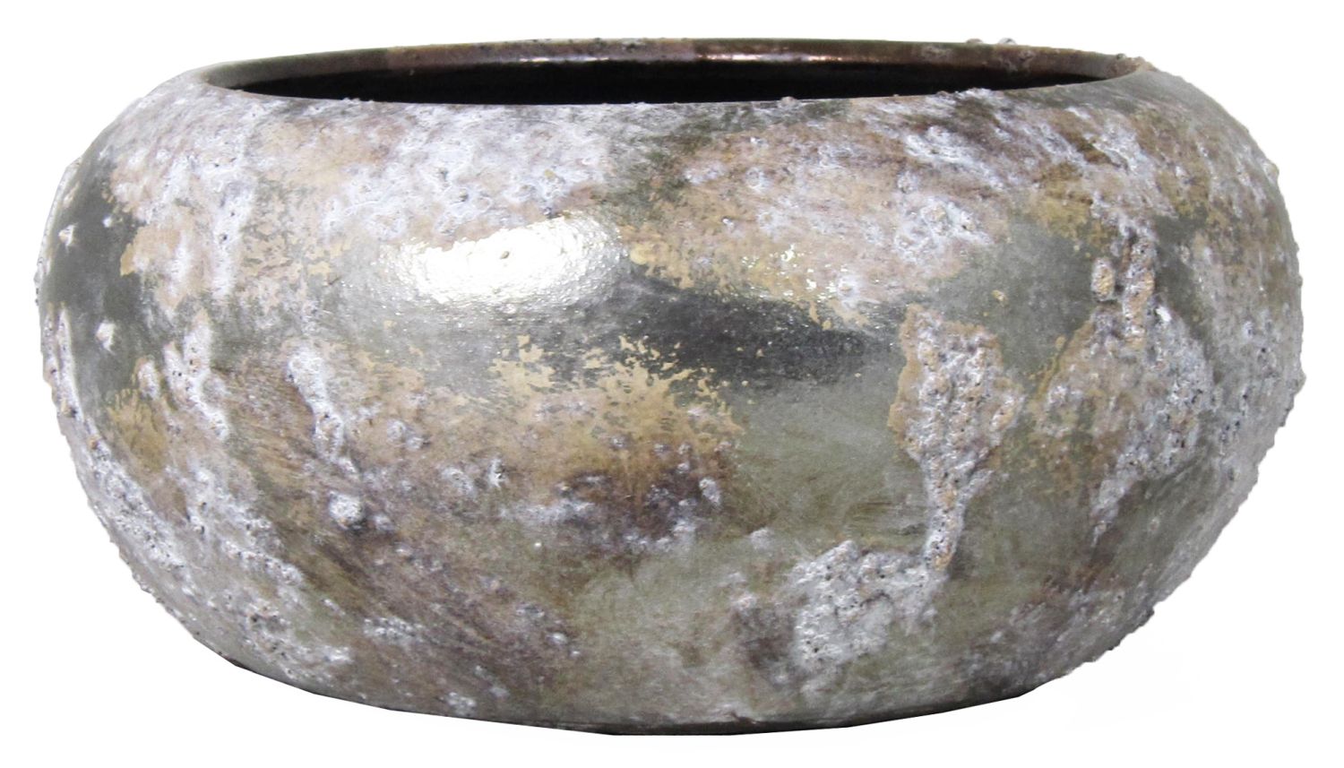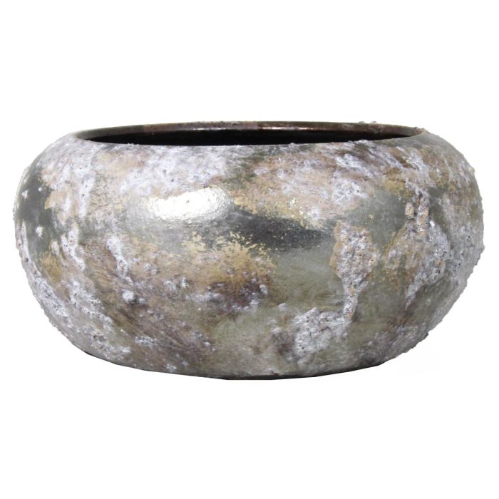 Maceta chata de cerámica MALIANDRA, efecto lavado, blanco-plata, 14cm, Ø29cm
