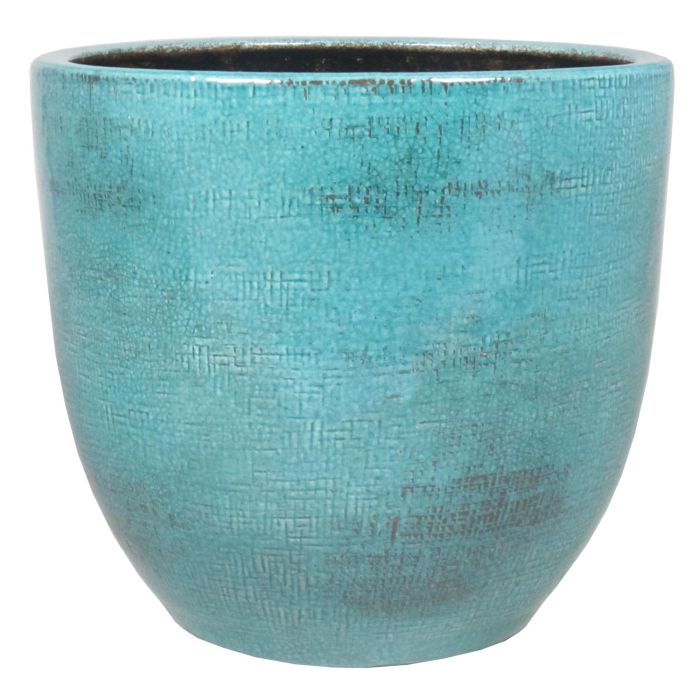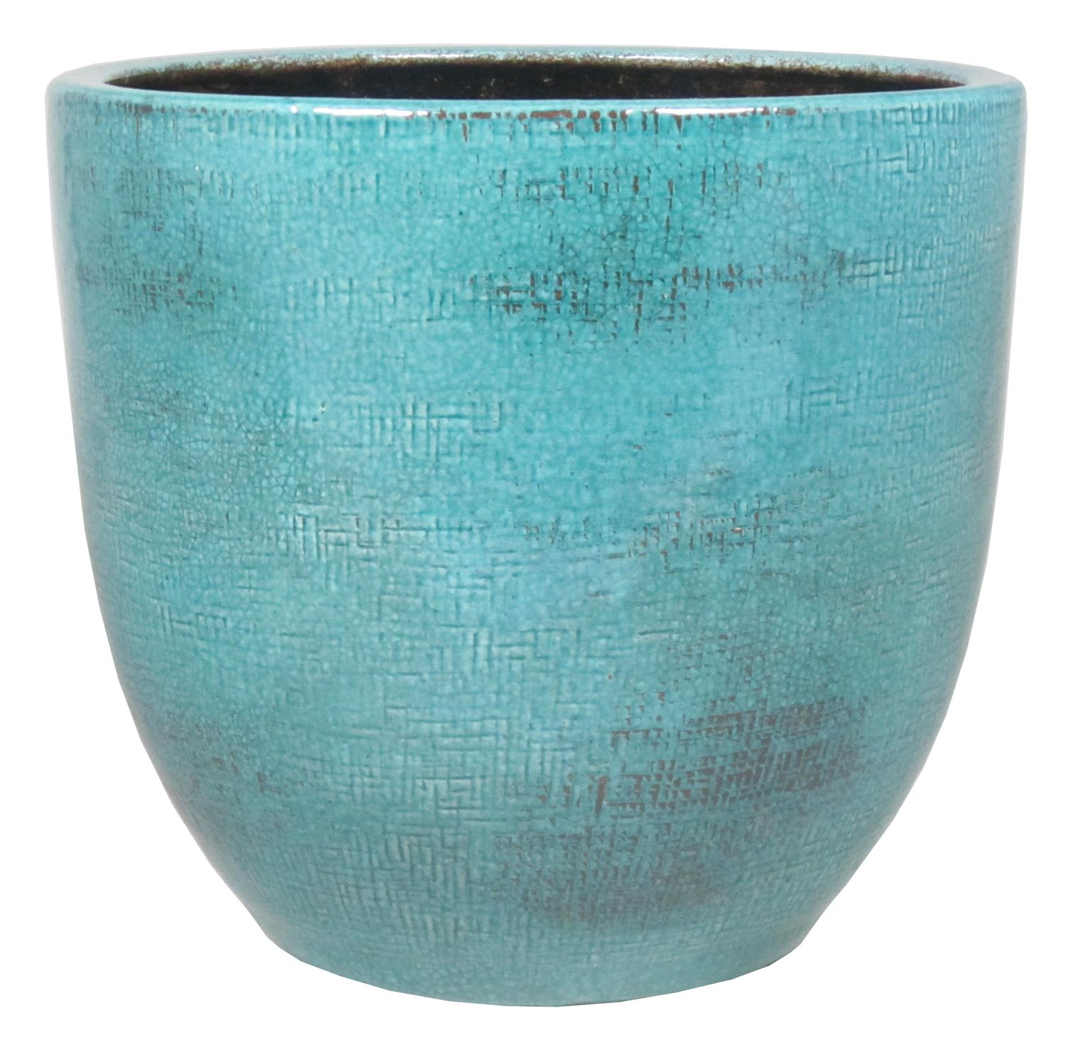 Jardinera AGLAIA de cerámica en color azul océano con un diámetro de aprox. 27 cm y una altura de aprox. 25 cm.