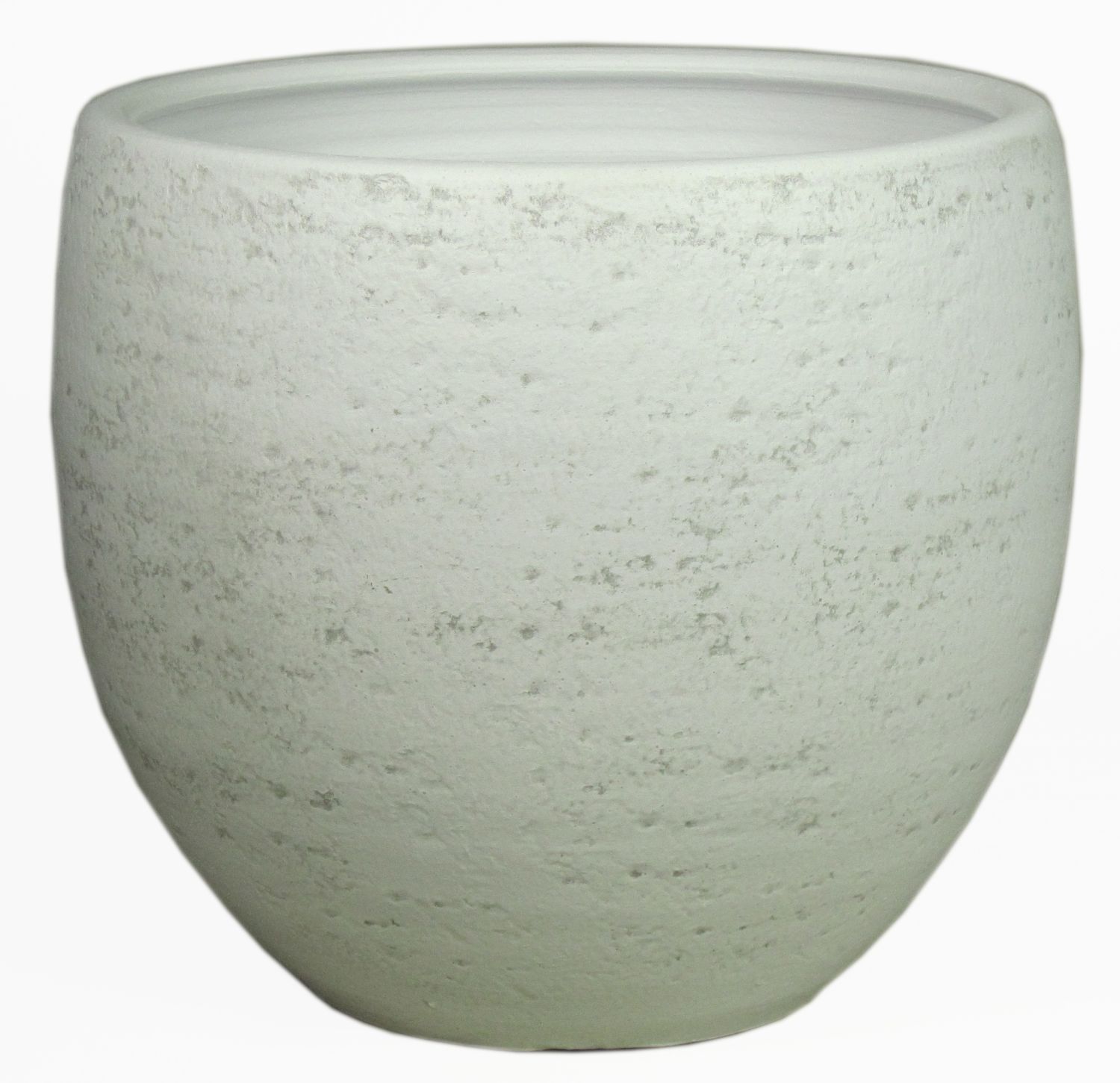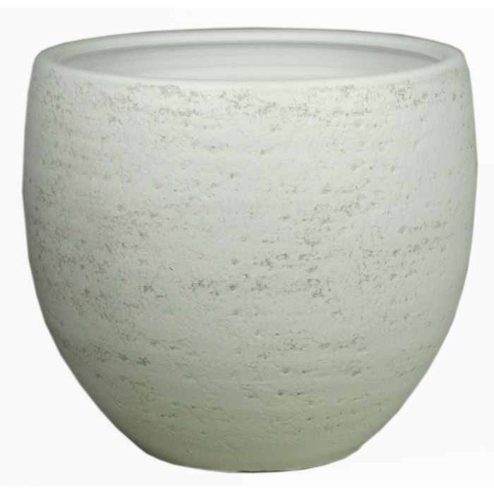 Jardinera KALEVA de cerámica en color blanco-gris con un diámetro de unos 32 cm y una altura de unos 30 cm.