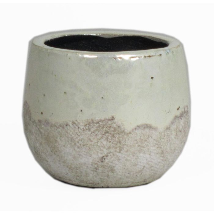 Macetero ADELFIA de cerámica en color gris crema con un diámetro de aprox. 11,5 cm y una altura de aprox. 10,5 cm.