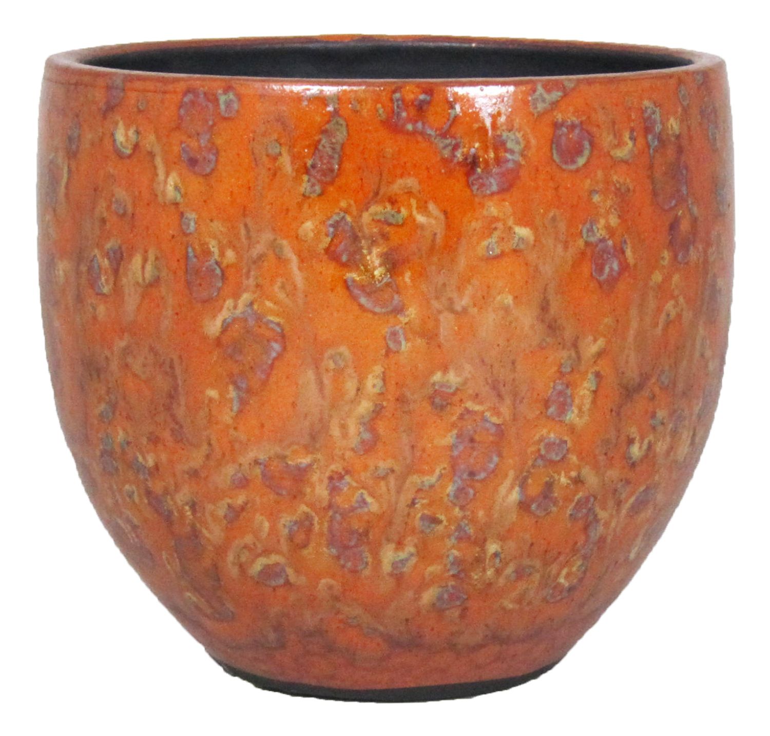 Tiesto ELIEL de cerámica en color naranja-amarillo con un diámetro de aprox. 34 cm y una altura de aprox. 34 cm.