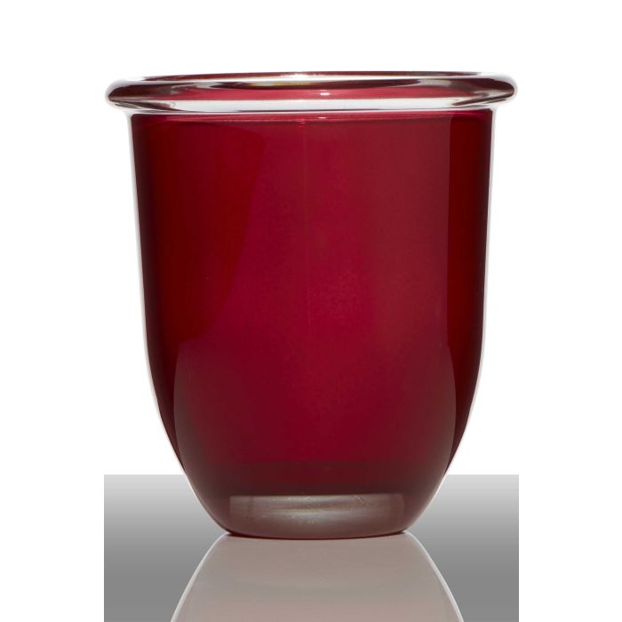 La jardinera/macetero pequeño FYNN de color rojo con medidas 17cm, Ø15.5cm de INNA Glas es perfectamente adecuado para plantas de interior, plantas de maceta o arreglos florales.