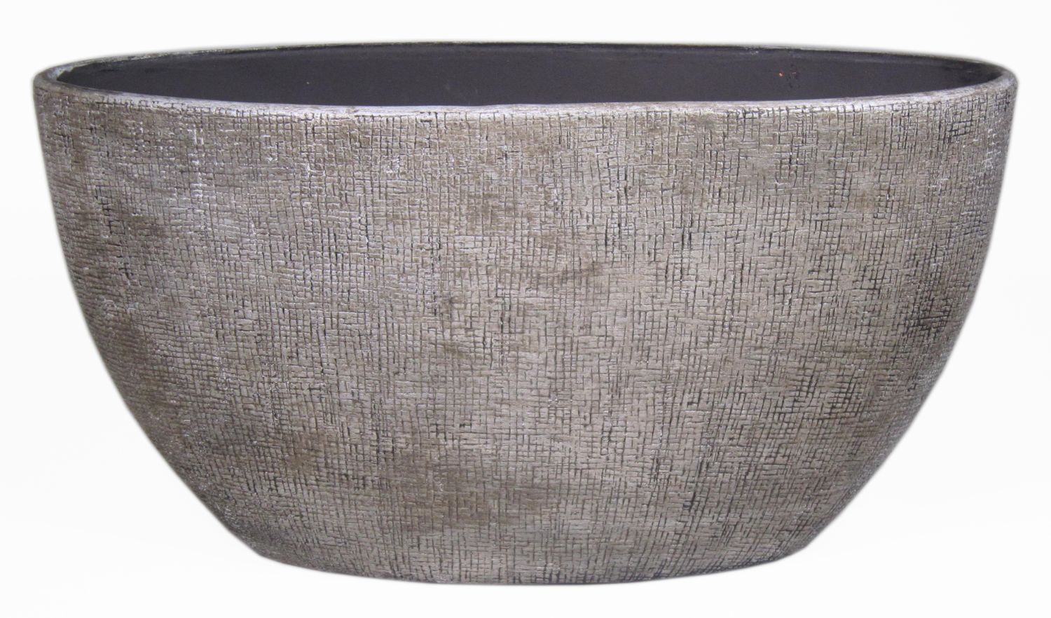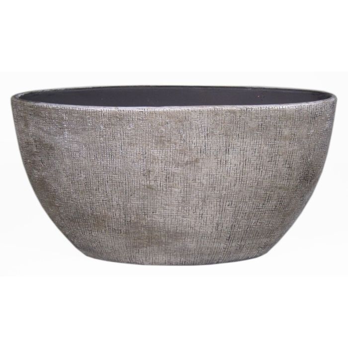 Maceta ovalada de cerámica AGAPE con grano, blanco-marrón, 49x20x25cm