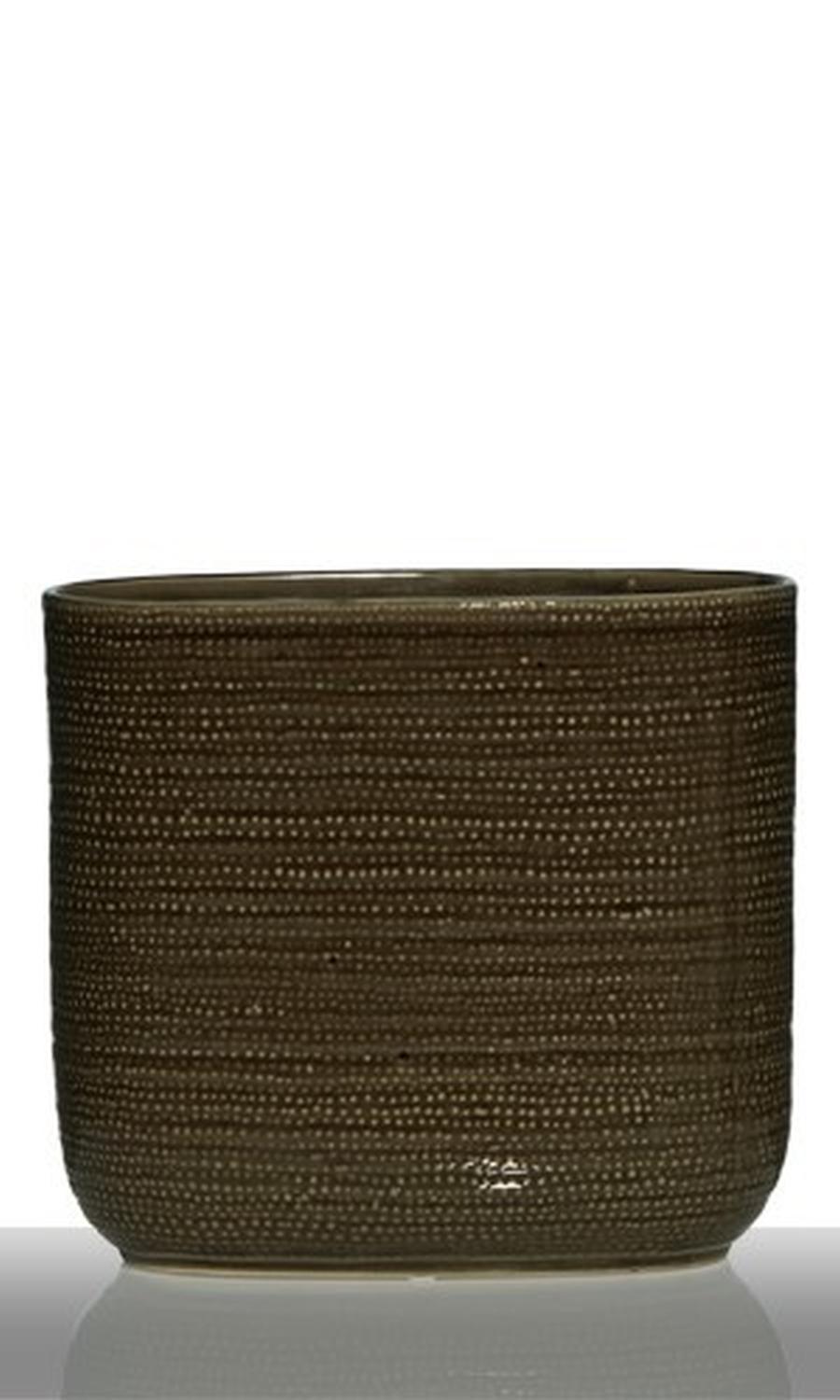 Maceta ovalada de cerámica ALICK con ranuras, marrón, 27x12,5X24cm
