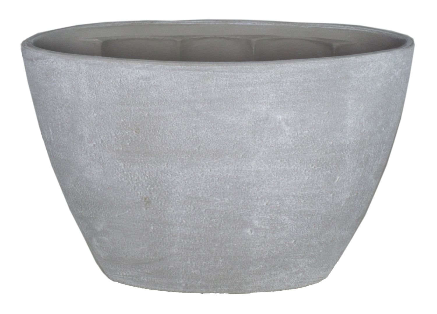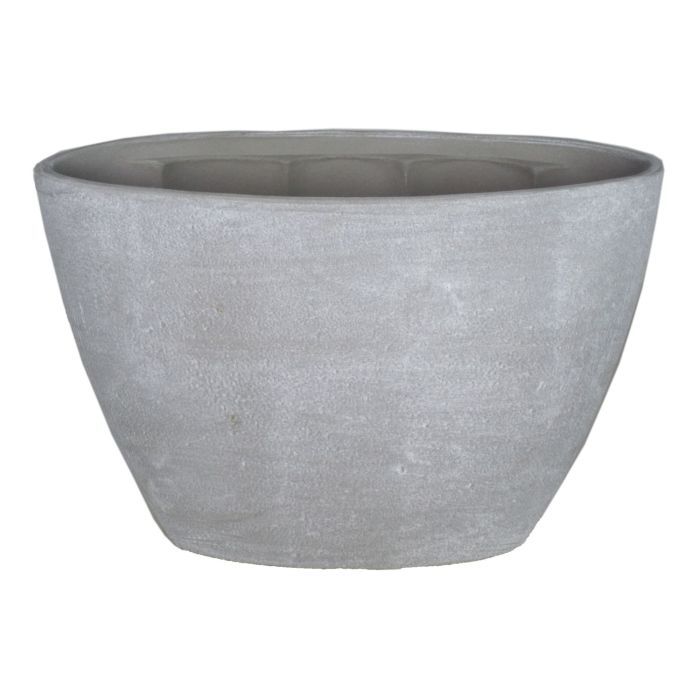 Tiesto RODISA de cerámica en color gris hormigón con una longitud de aproximadamente 32 cm y una altura de aproximadamente 22,5 cm.