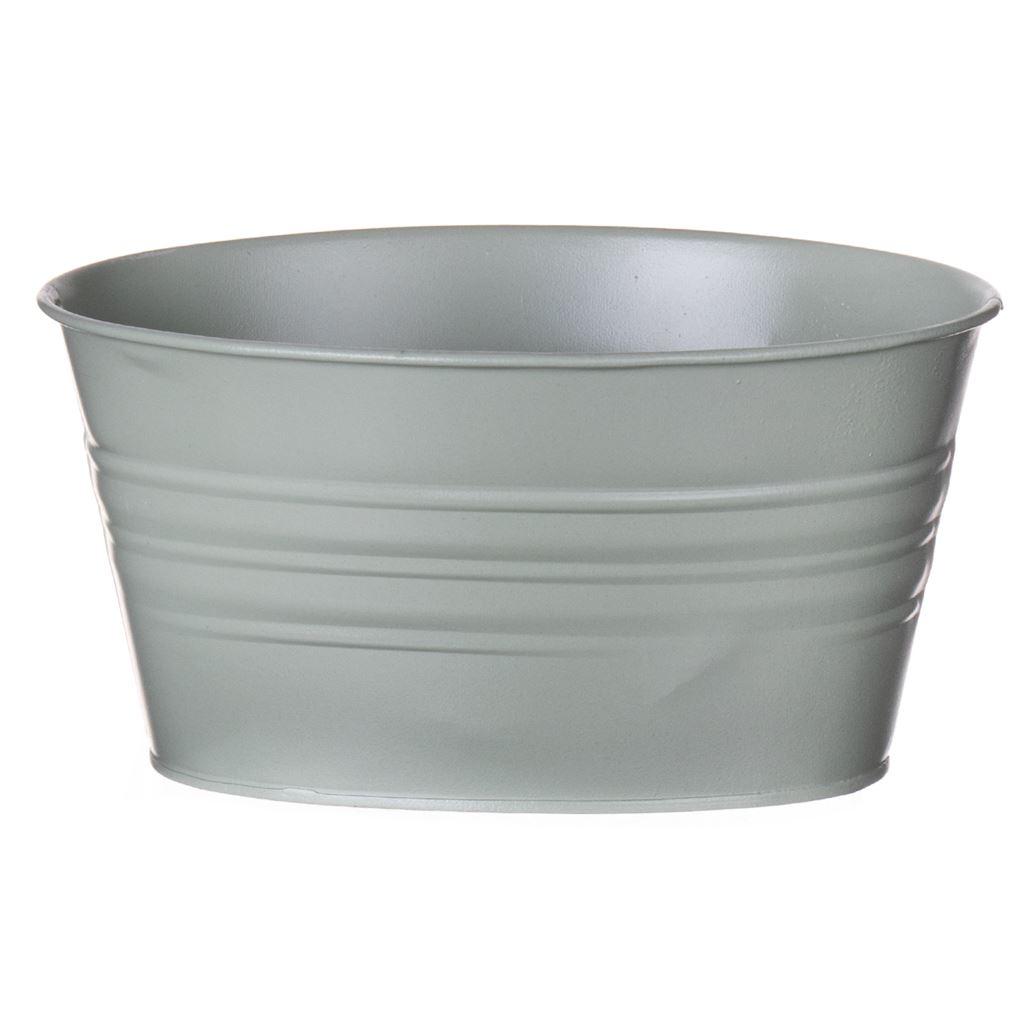 Maceta ovalada de zinc MICOLATO con ranuras, verde jade, 19x13,5x10cm
