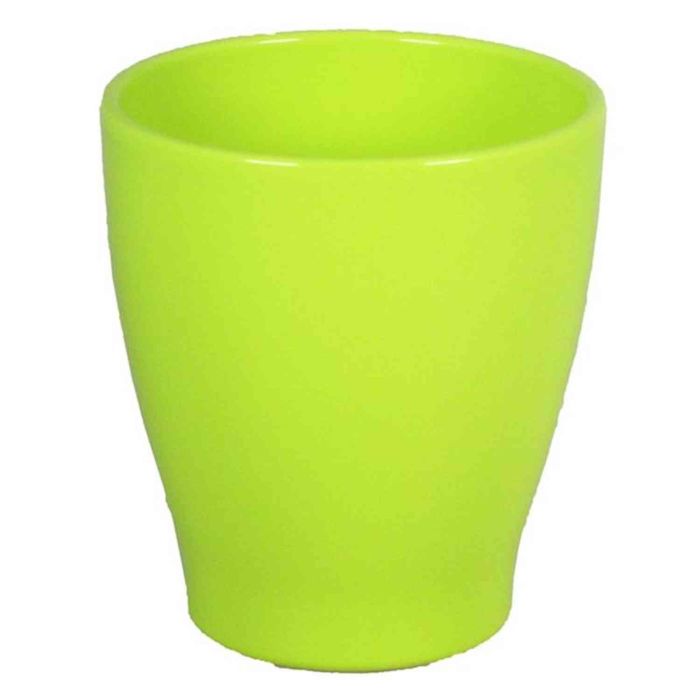 Maceta de flores MALAYER de cerámica en color verde manzana con un diámetro de aprox. 13.2 cm y una altura de aprox. 15 cm.