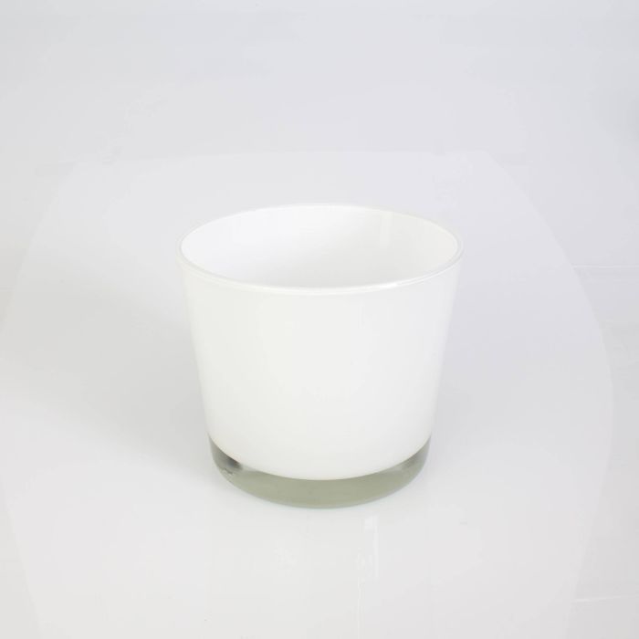 Portavelas de cristal ALENA de INNA Glas en color blanco. El vaso puede utilizarse tanto como macetero para flores y plantas como de gran farol para velas.