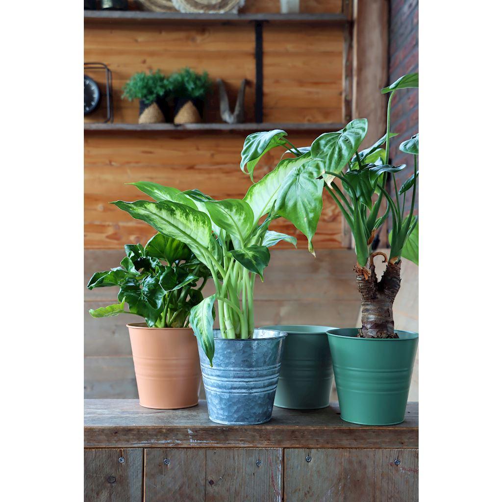 Maceta redonda de zinc MICOLATO con ranuras, terracota, 12cm, Ø13,5cm