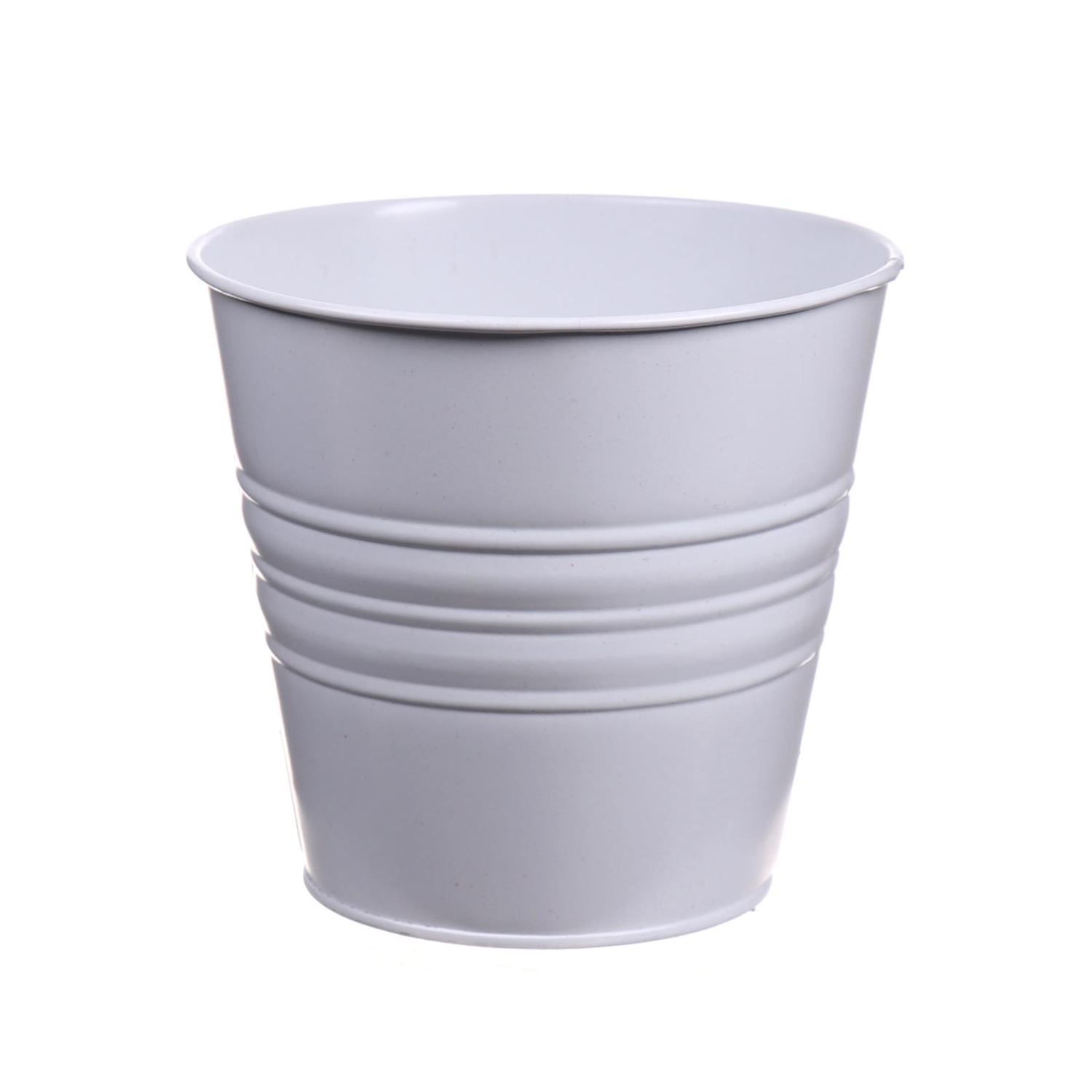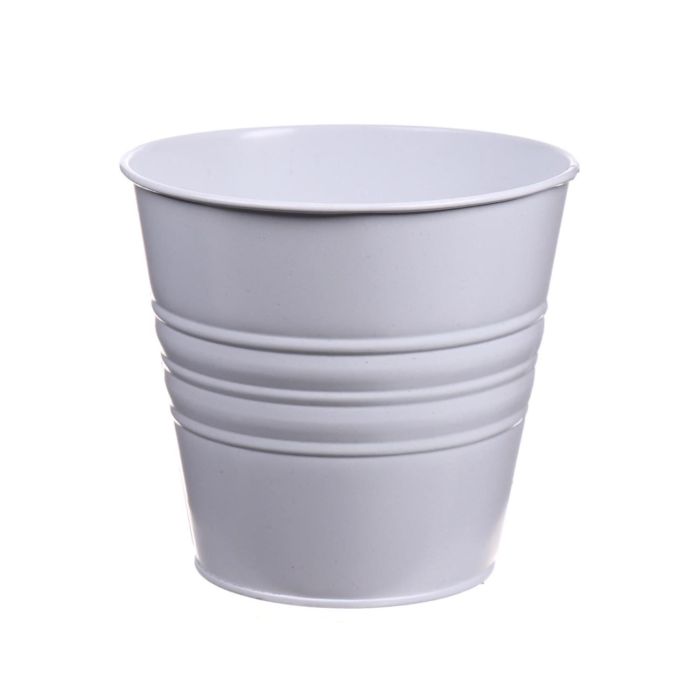 Maceta redonda MICOLATO con ranuras, zinc, blanco, 16cm, Ø18,5cm