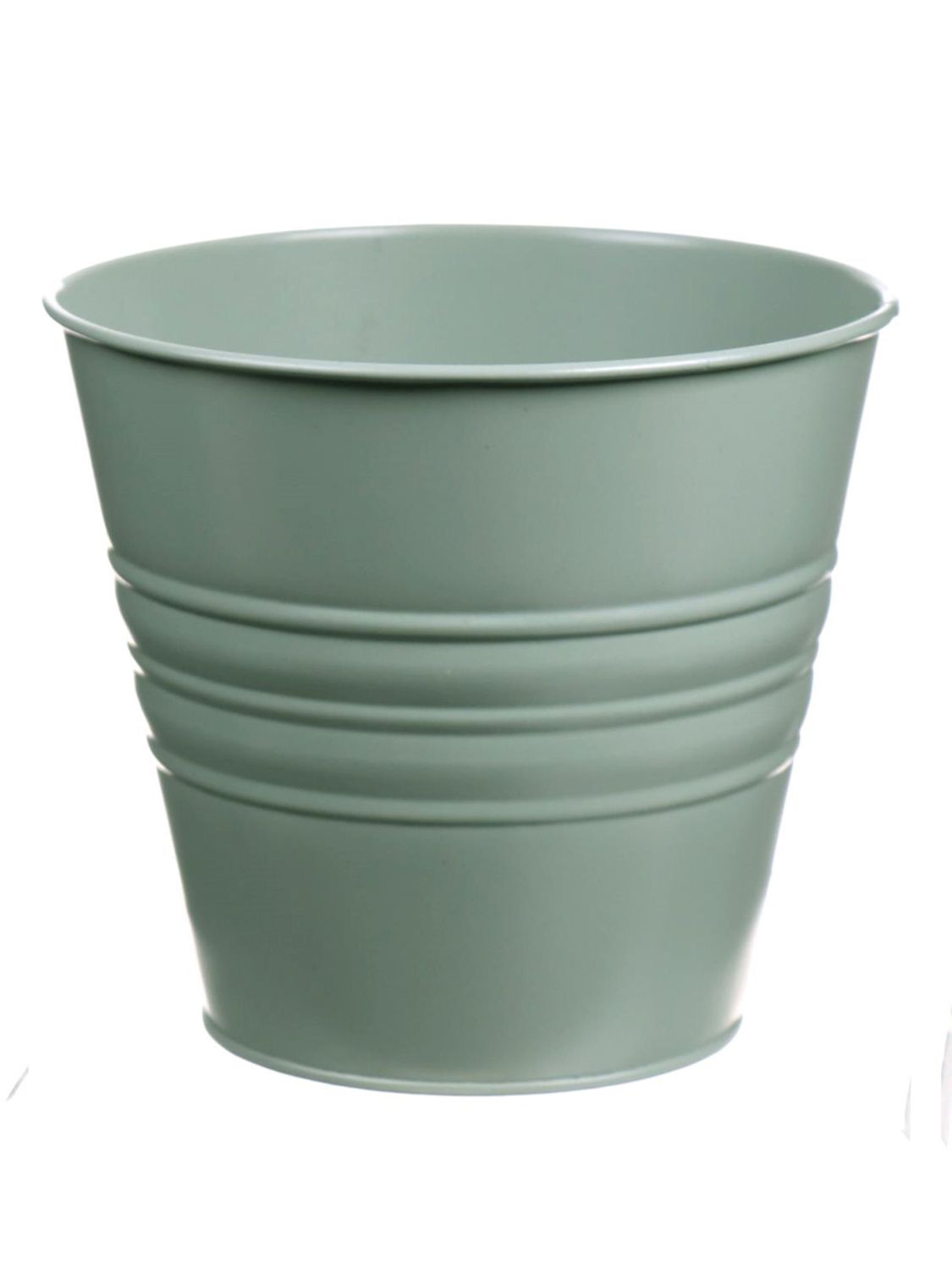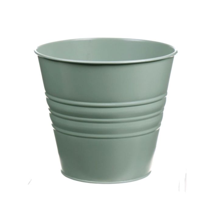 Maceta redonda MICOLATO con ranuras, zinc, verde jade, 13cm, Ø15,5cm