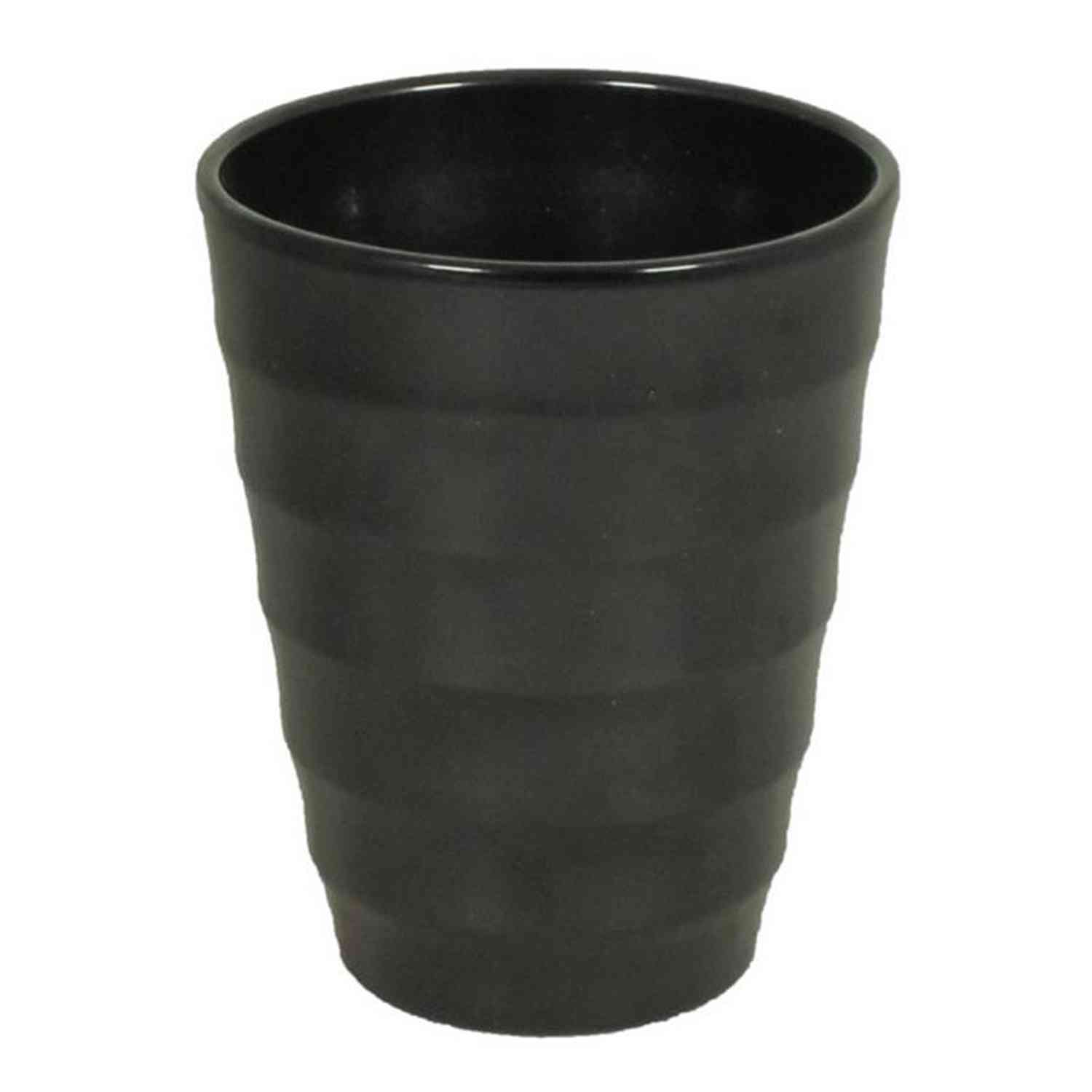 Jarrón para orquídeas IZEH de cerámica en color negro con un diámetro de aprox. 14 cm y una altura de aprox. 17 cm.