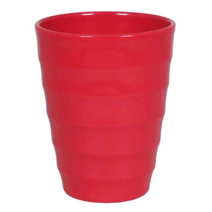 Jarrón para orquídeas IZEH de cerámica en color rojo con un diámetro de aprox. 14 cm y una altura de aprox. 17 cm.