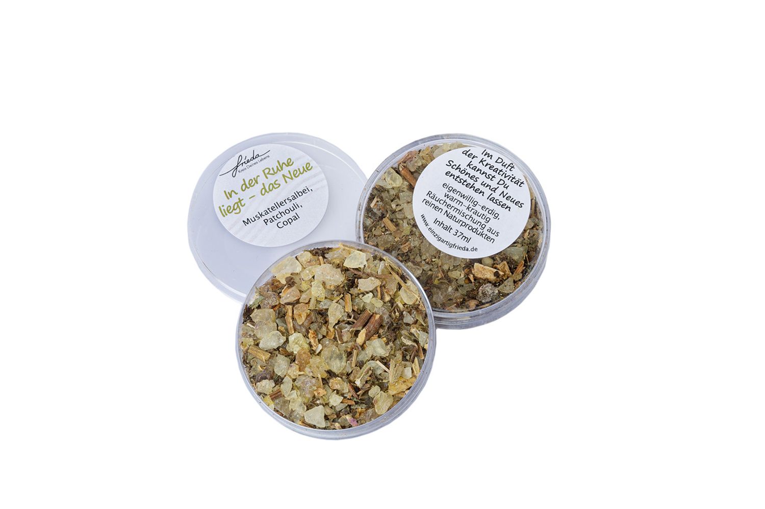 La mezcla de incienso se puede utilizar en un quemador de incienso con una vela de té o en carbón de incienso en un portainciensos. Si se utiliza un incensario, se coloca la mezcla de incienso en el tamiz. Es aconsejable colocar un trozo de papel de aluminio sobre el tamiz para que los componentes aceitosos no puedan gotear en la llama y las hierbas no se quemen demasiado rápido. Otra ventaja es que el papel de aluminio evita que el tamiz se pegue y, por tanto, no es necesario limpiarlo. El calor de la vela de té calienta el incienso y éste empieza a humear y a oler. Cuando se utiliza un quemador de incienso, primero se coloca arena en el cuenco como aislante térmico y después se coloca encima el carbón vegetal o las pastillas de carbón. Se enciende el carbón y se espera hasta que éste haya brillado por completo. Sólo en ese momento se coloca la mezcla de incienso sobre el carbón, que inmediatamente se enciende y se evapora, liberando el aroma de la mezcla. Sin embargo, con este método no es posible influir en la rapidez con la que se quema cada ingrediente. Dependiendo de la mezcla de incienso, debe decidirse de antemano qué método es el mejor. Es importante que se utilice una base ignífuga para ambos métodos de aplicación y que nunca se deje sin vigilancia.