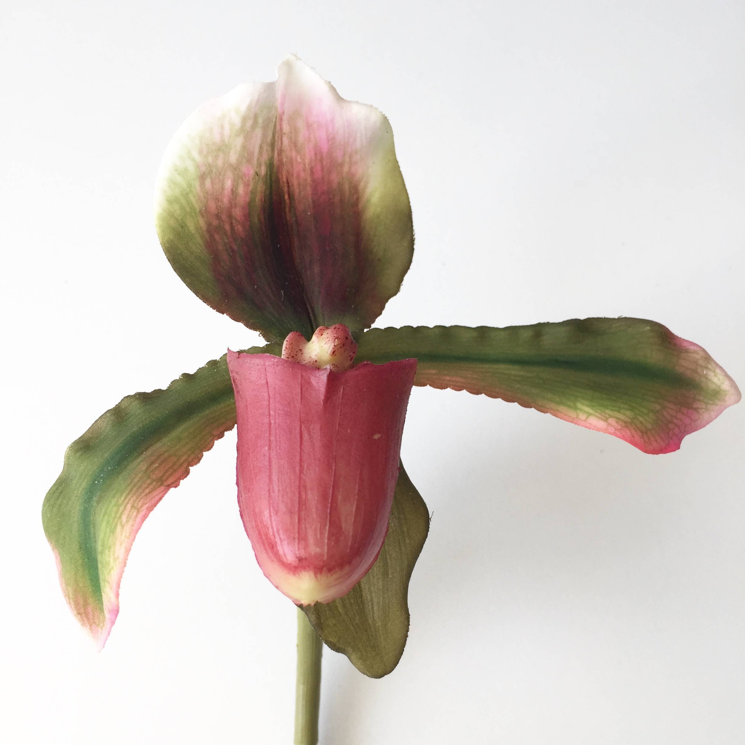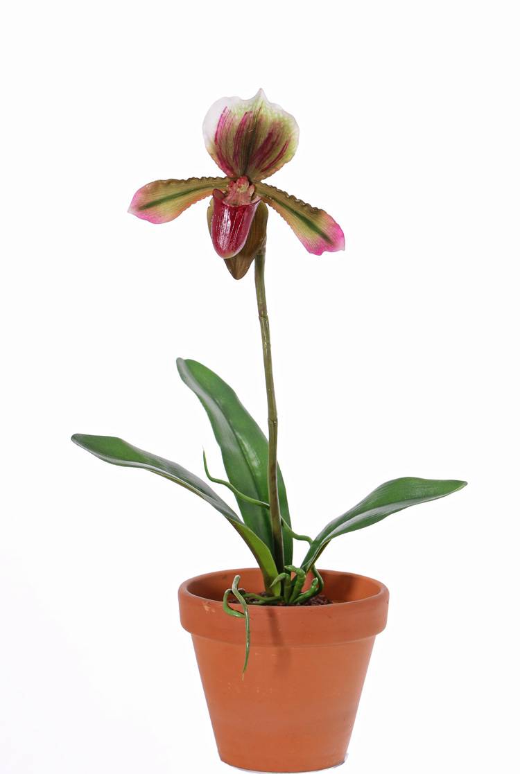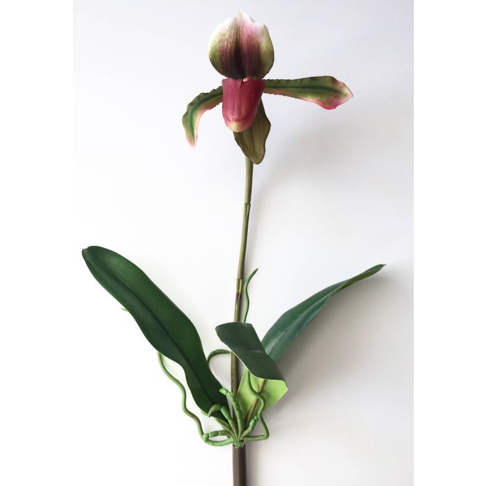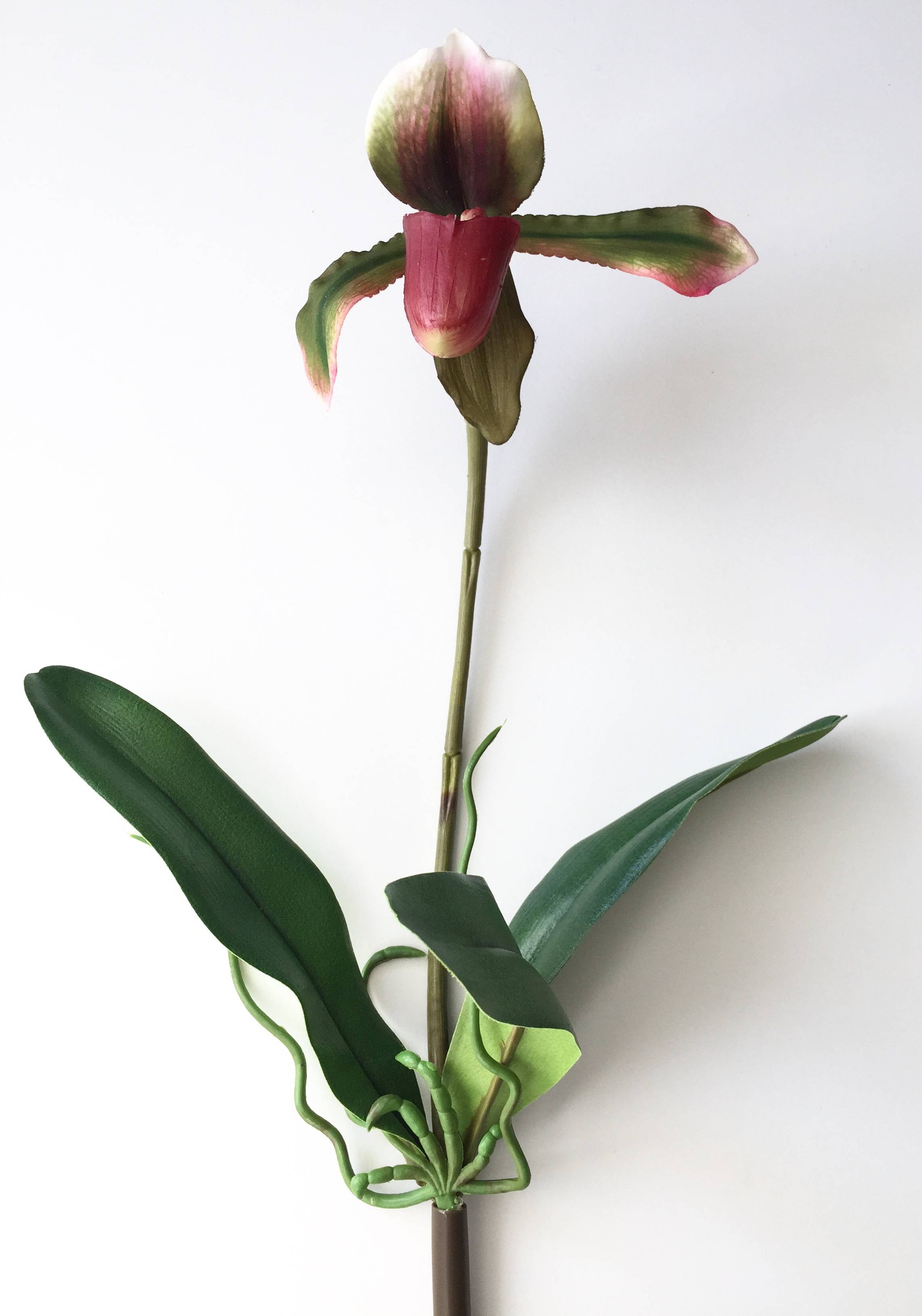 Orquídea artificial Paphiopedilum VELANA, con estaca, púrpura-verde, 40cm