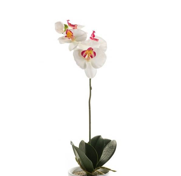 Orquídea Phalaenopsis de plástico ISIS, con palo, blanco-rosa, 40cm