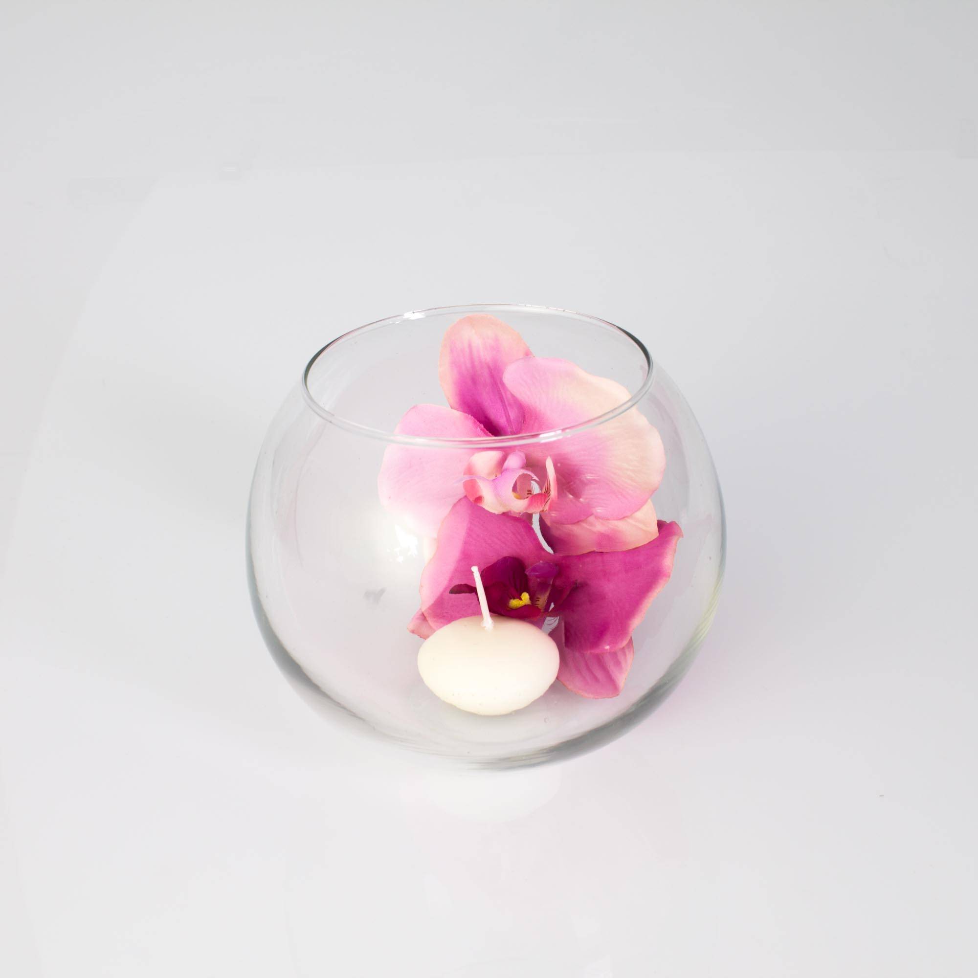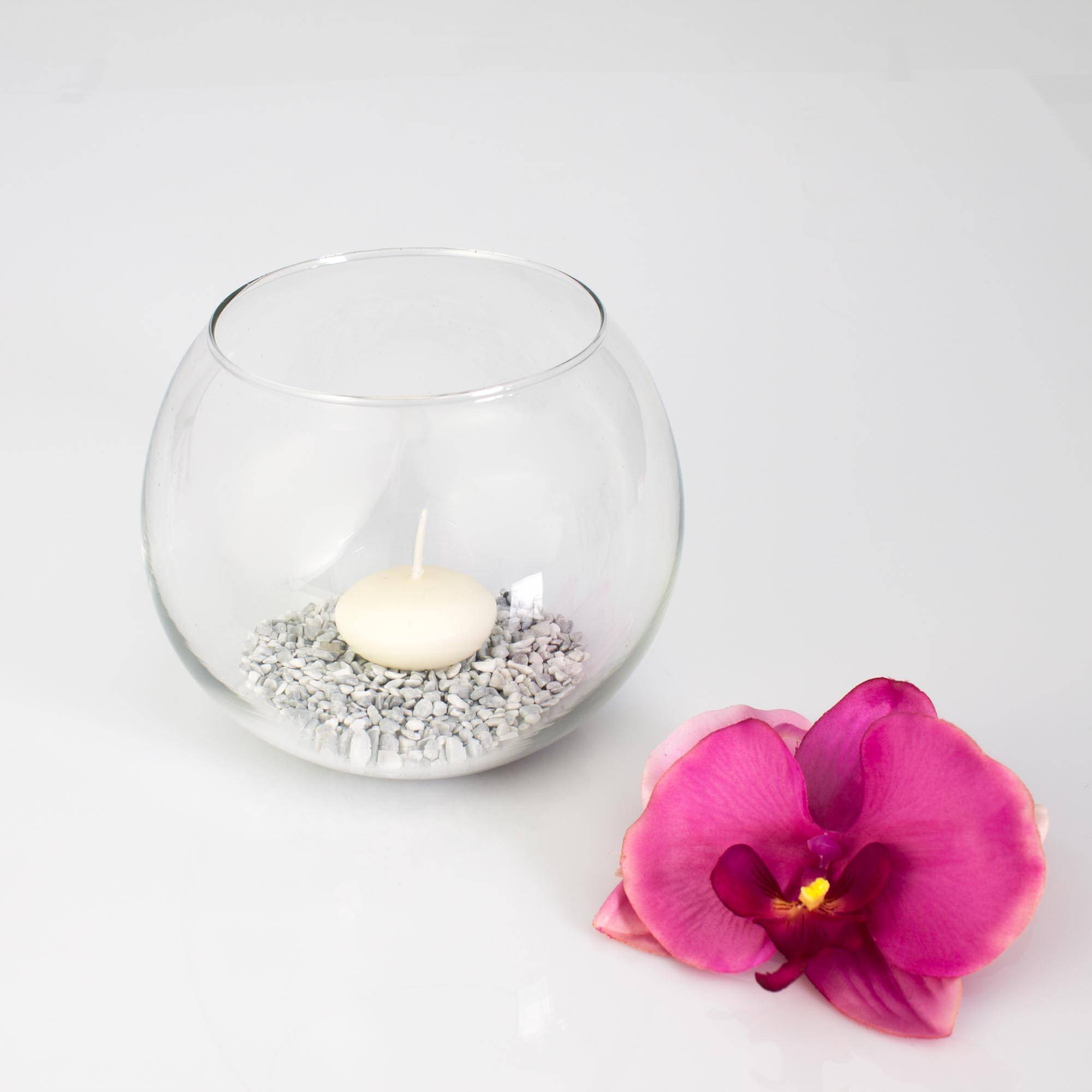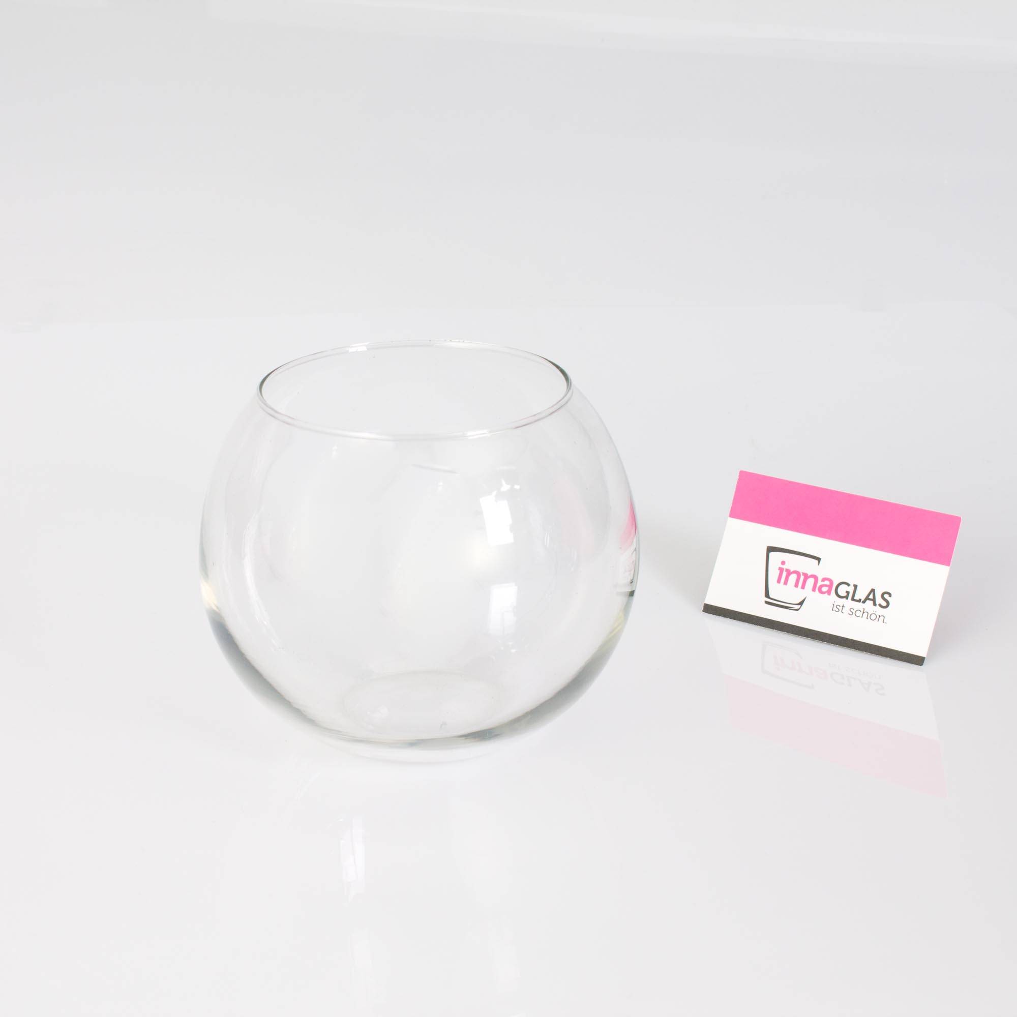Esférico florero TOBI con un diámetro de 14 cm de INNA GLAS. El jarrón redondo es especialmente adecuado para la decoración de mesas en eventos junto con ramas, grava decorativa, piedras, arena y mucho más