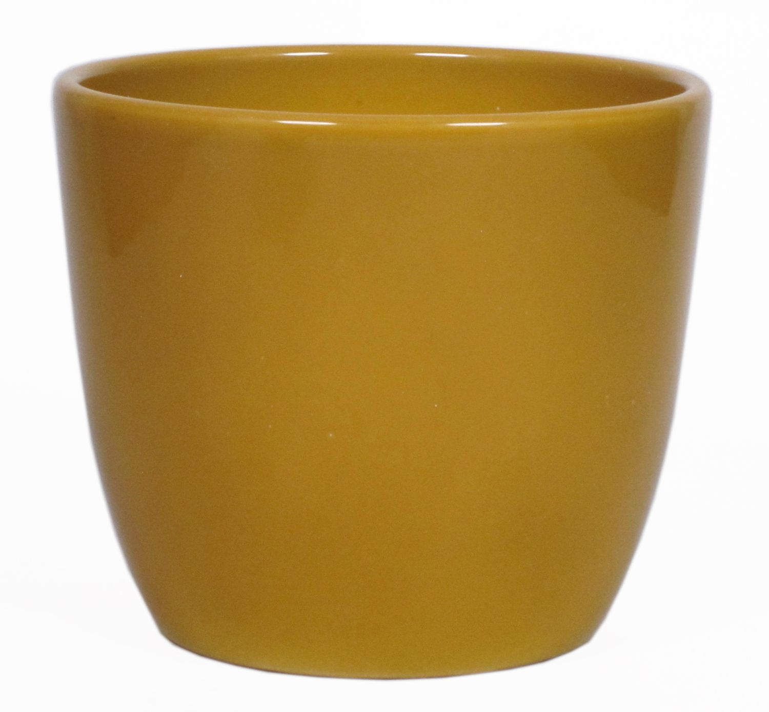 MaceteroTEHERAN BASAR de cerámica en color amarillo ocre con un diámetro de aprox. 10.5 cm y una altura de aprox. 8.5 cm.