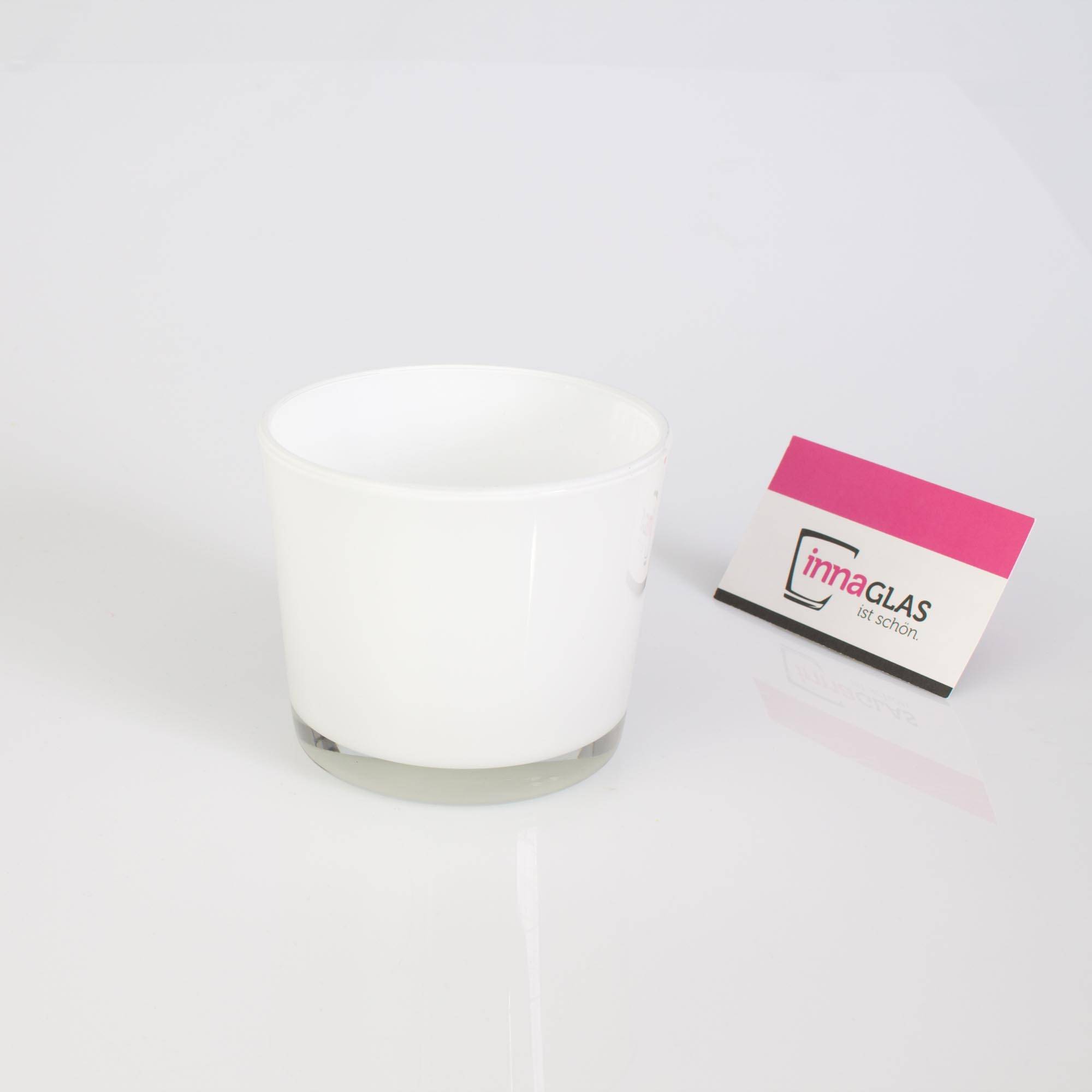 Pequeño florero ALENA de INNA Glas en color blanco. El florero de mesa con una altura de aprox. 8,5 cm y un diámetro de aprox. 10 cm puede utilizarse también como portavelas.